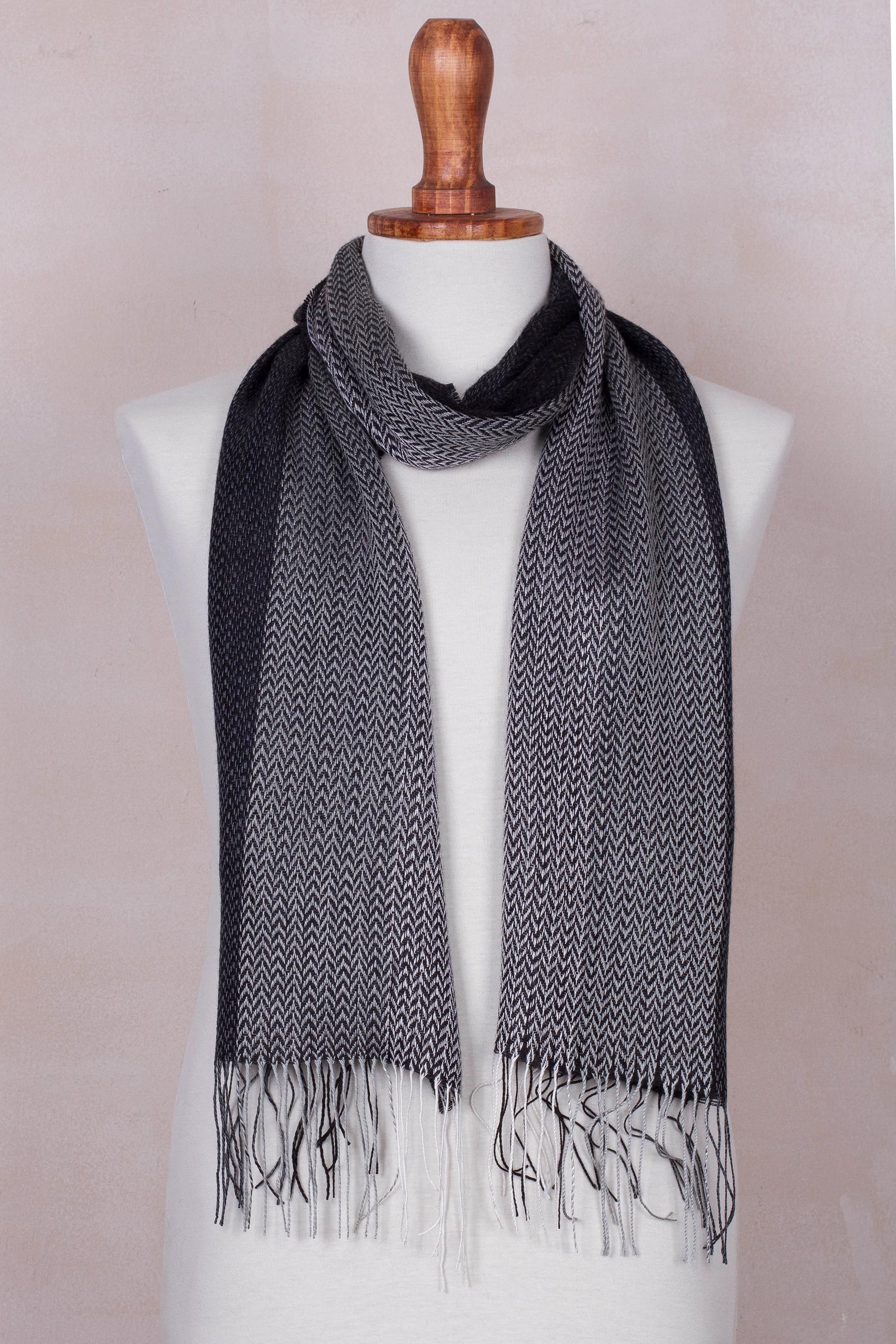 Handwoven Black and Grey Baby Alpaca Blend Scarf from Peru, 'Emboldened'