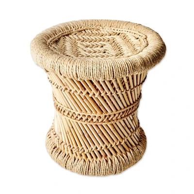 Handwoven Sarkanda Grass Stool from India, 'Sarkanda Rattan'
