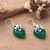 Heart-Shaped Green Onyx Dangle Earrings with Floral Details, 'Heartfelt Spring'