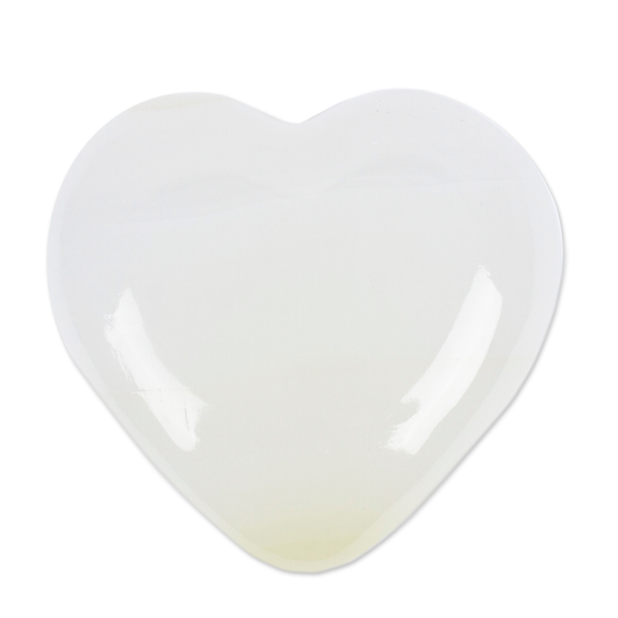 Heart-Shaped White Onyx Home Accent Hand-Carved in Mexico, 'Take my Heart'
