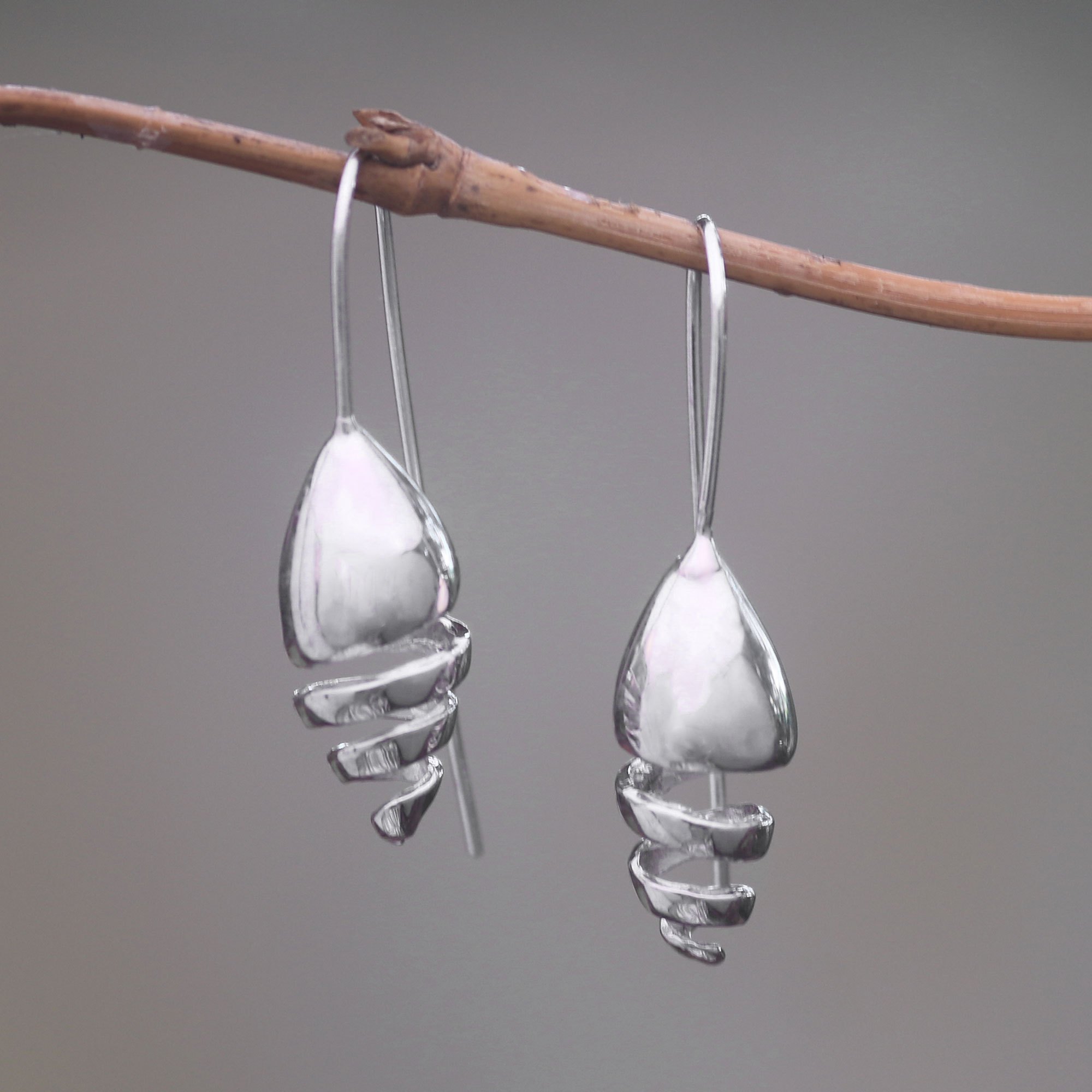 High-Polish Spiral Pattern Sterling Silver Drop Earrings, 'Shining Snail Spiral'