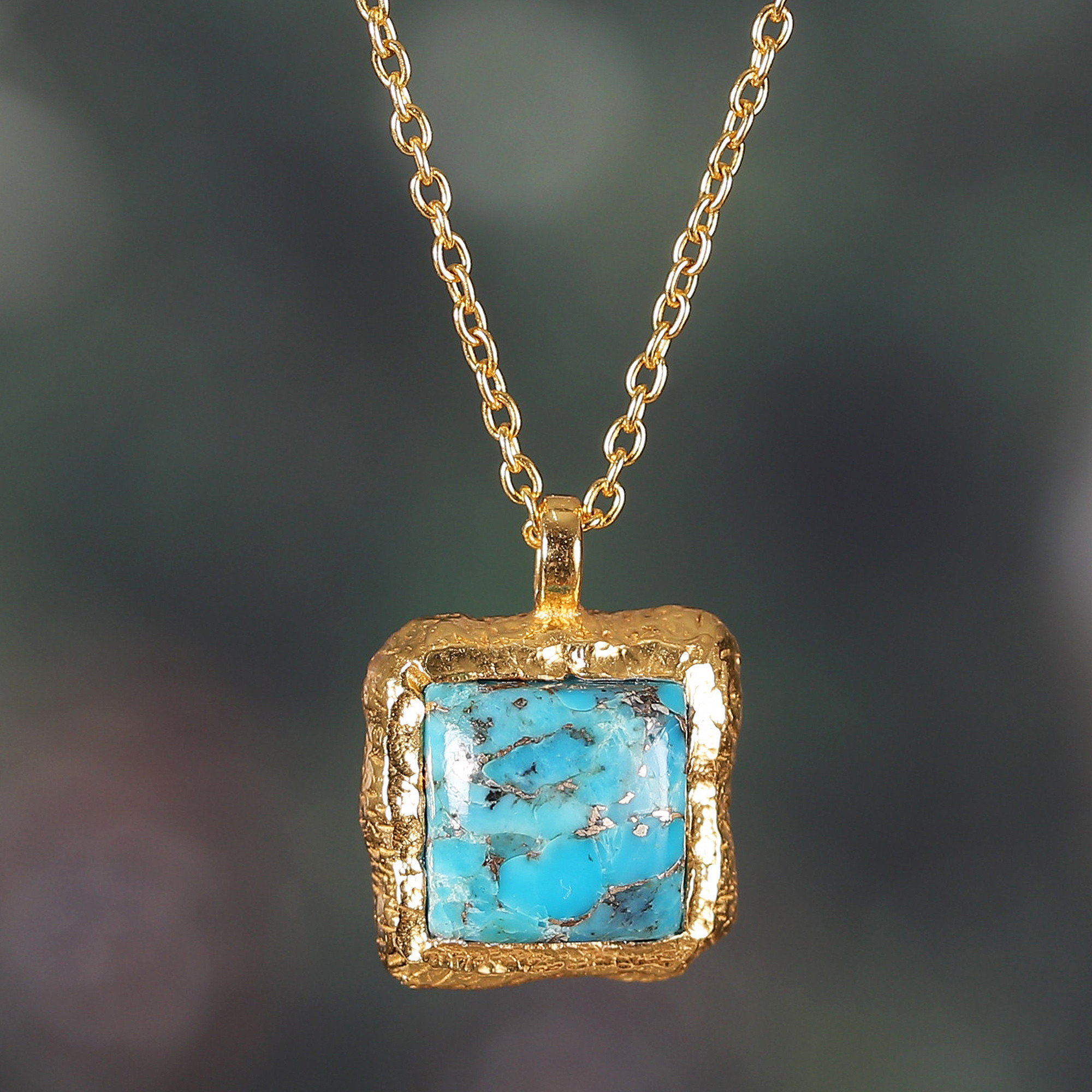 High-Polished 18k Gold-Plated Composite Turquoise Necklace, 'Glorious Island'