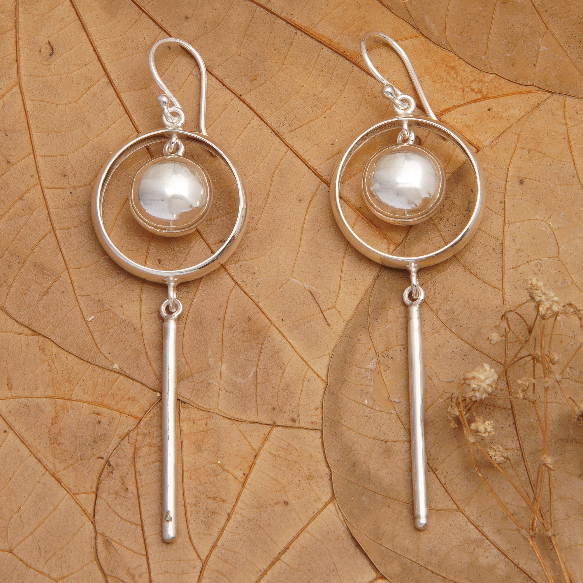 Mysticism and ethereal beauty emerge from these sterling silver dangle earrings made by the talented artisan Griya Suarningsih from Bali. Inspired by avant-garde trends and determined to spread a message of love for the earth, the artisan joins round pieces to elegant bars, all in a high polish finish for a luminous look.