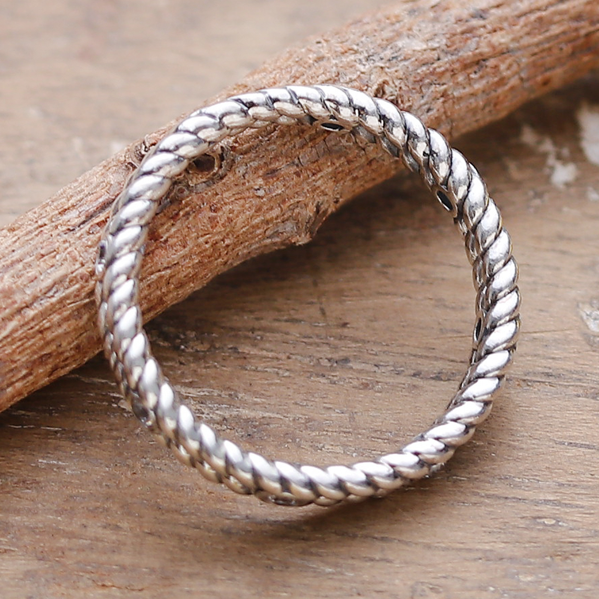 High-Polished Classic Rope-Shaped Cubic Zirconia Band Ring, 'Sparkling Rope'