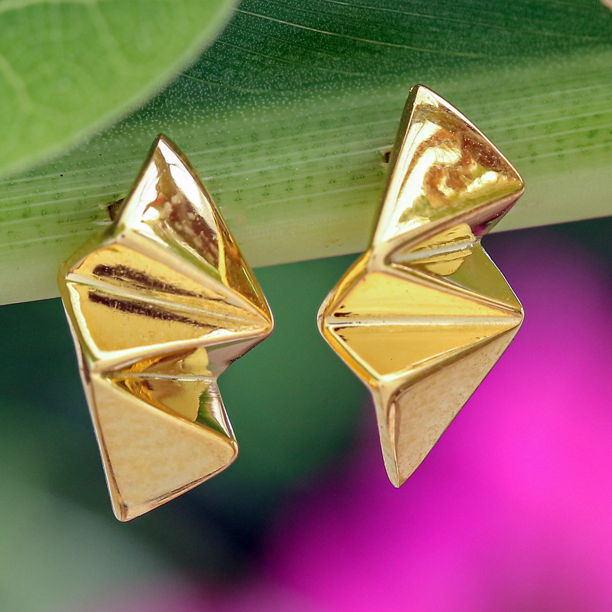 Geometry and glamour unite in Lalana's newest creation. The Thai artisan transforms avant-garde trends into a glorious pair of stud earrings made from high-polished 18k gold-plated sterling silver, perfect for a radiant fashion statement.