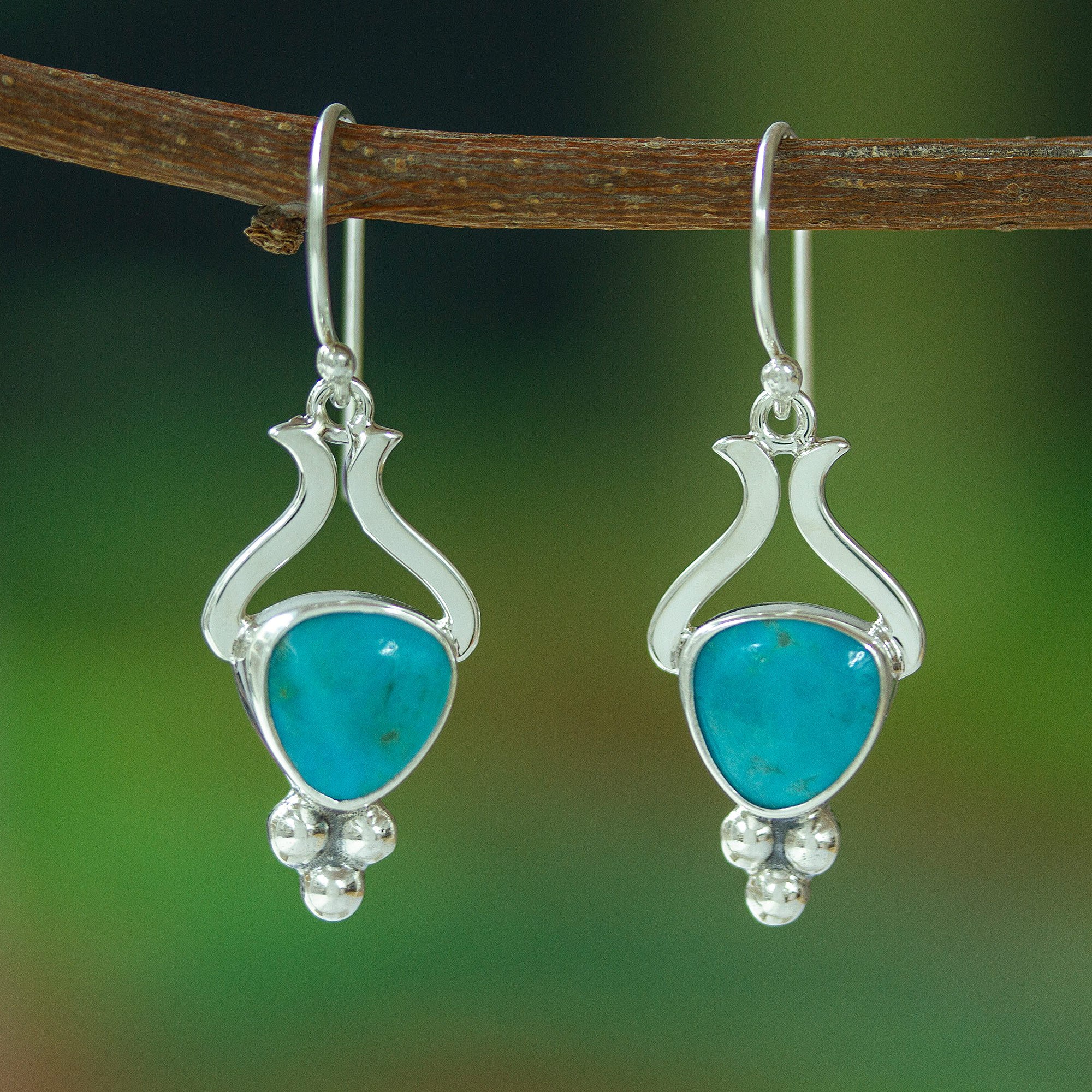 High-Polished Natural Turquoise Dangle Earrings from Mexico, 'Serene Realm'