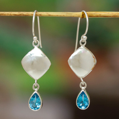 High-Polished Silver and Drop-Shaped Topaz Dangle Earrings, 'Avant-Garde Love'