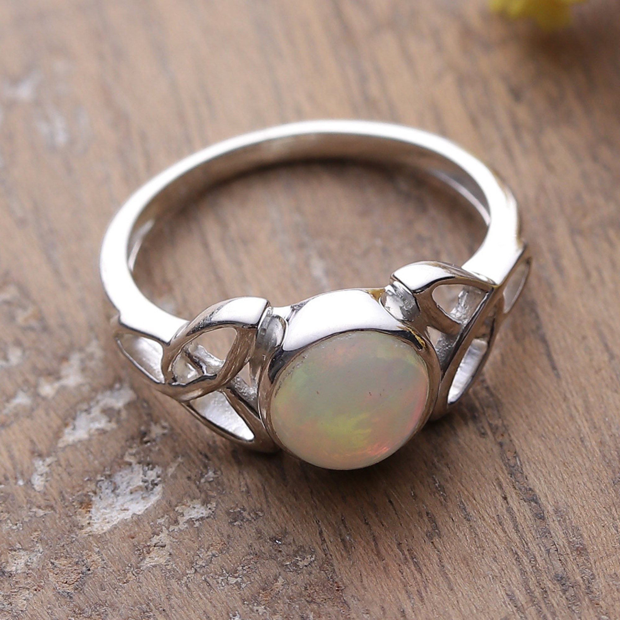 Heaven has blessed Earth with an exquisite gemstone associated with purity, hope and truth. The gorgeous opal jewel crowning Harshita Sharma's sterling silver single stone ring exudes a celestial vibe enriched by India's luxurious jewelry arts.