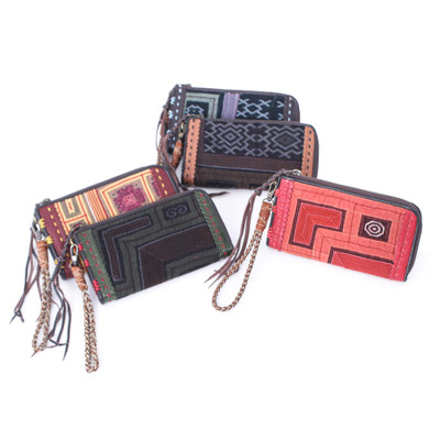 Hill Tribe Handcrafted Leather-Accented Cotton Blend Wallet, 'Classic Grandeur'