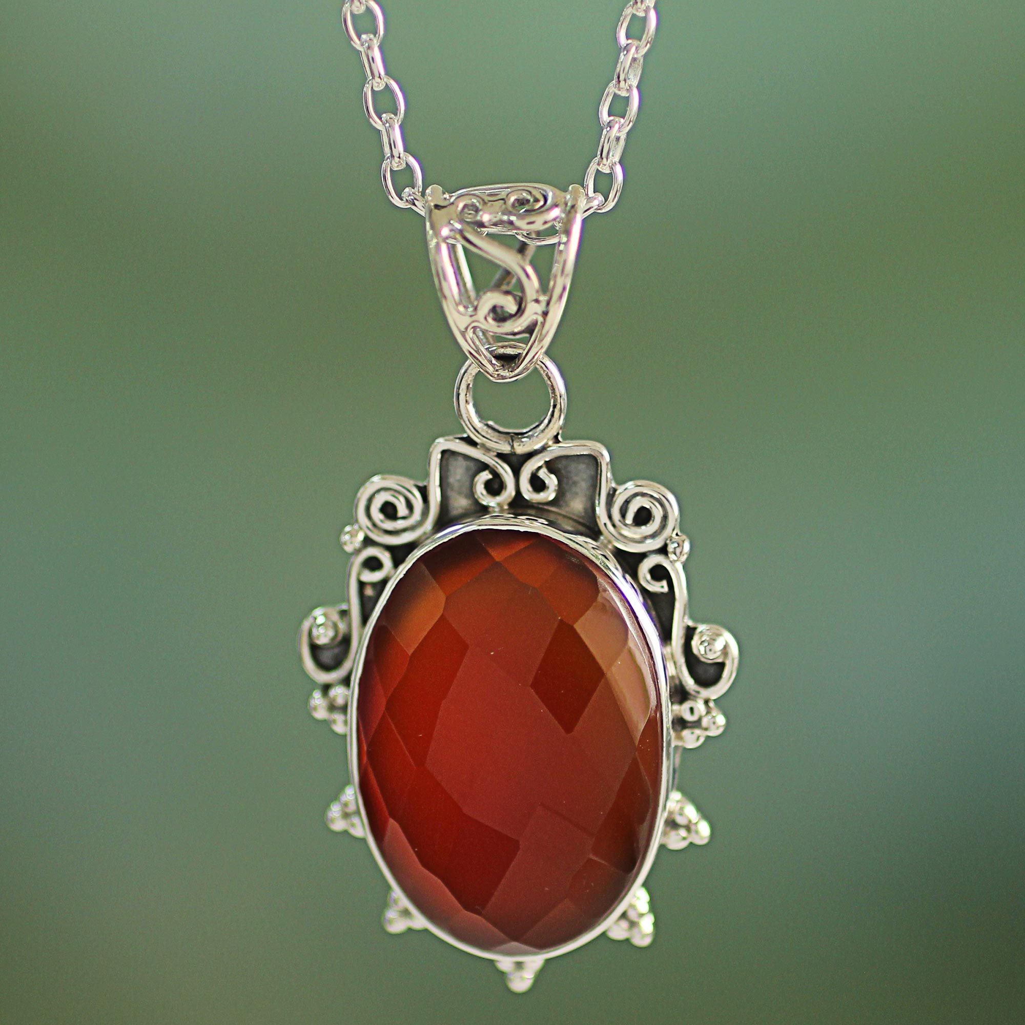 India Handcrafted Sterling Silver Necklace with Carnelian, 'Glow of Embers'