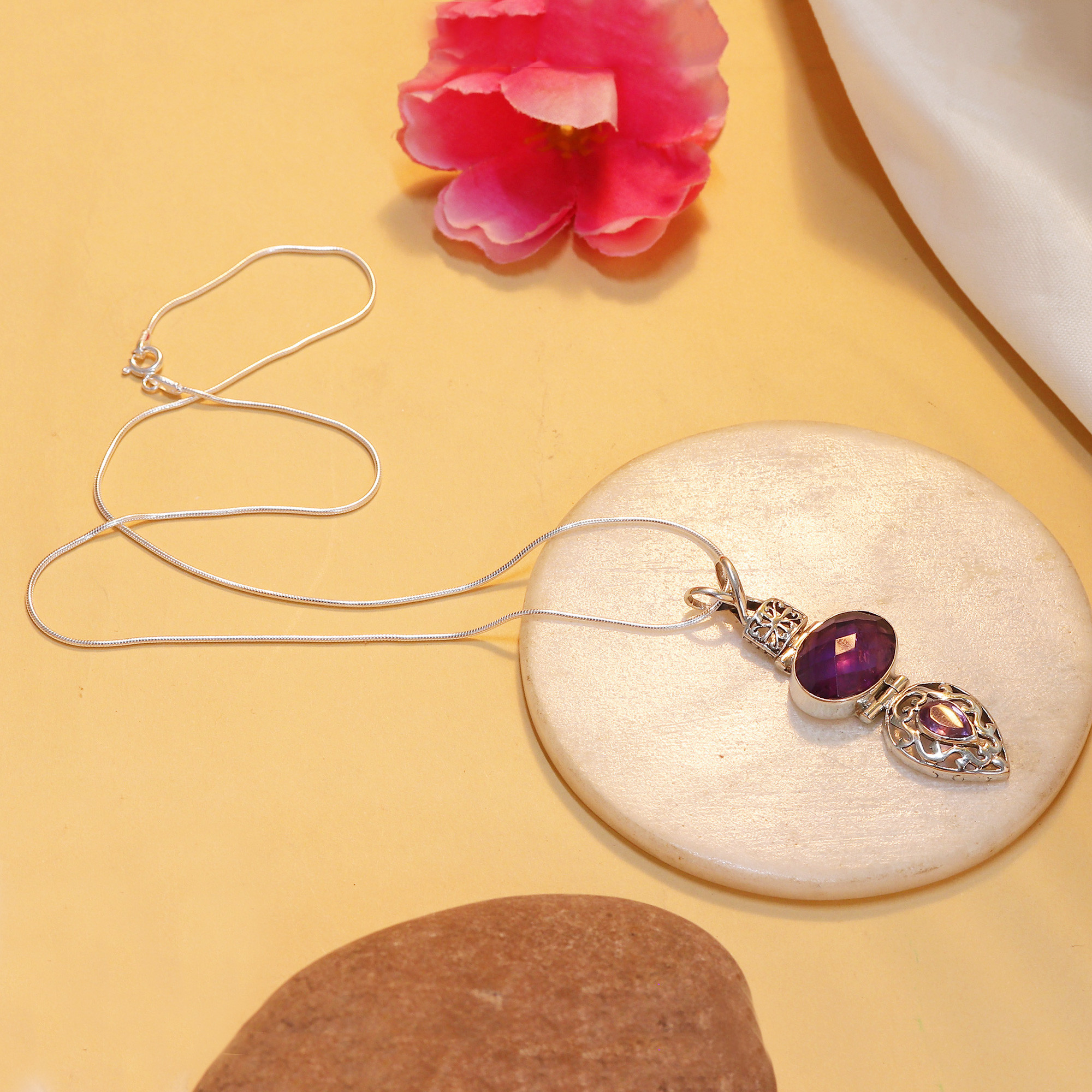 • Sterling silver and amethyst