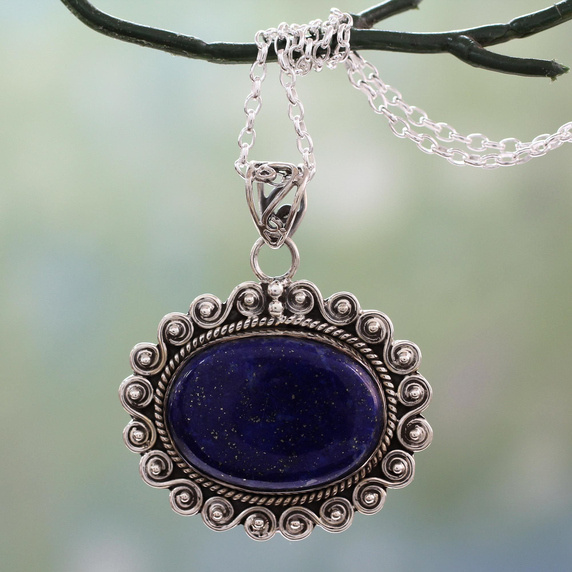 India Lapis Lazuli Necklace Artisan Crafted with 925 Silver, 'True Admiration'