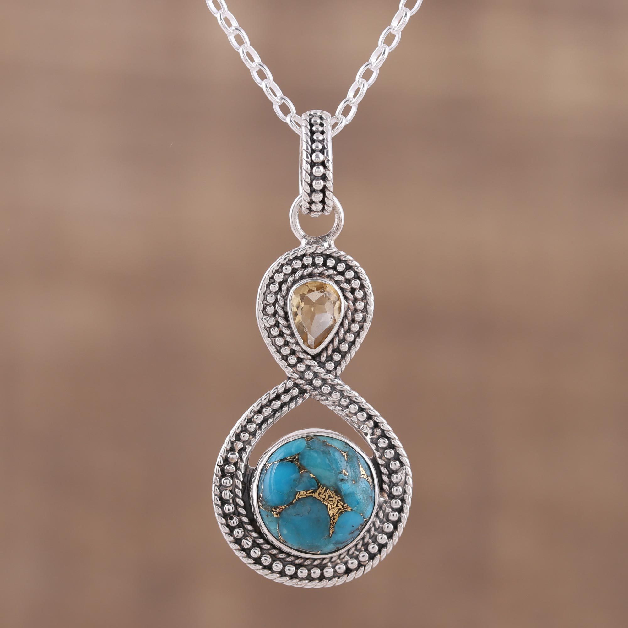 Indian Citrine and Composite Turquoise Pendant Necklace, 'Dazzling Infinity'