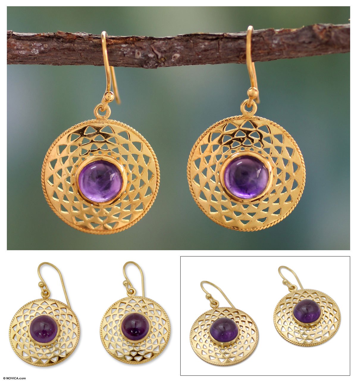 Indian Gold Vermeil and Amethyst Earrings, 'Jaipur Suns'
