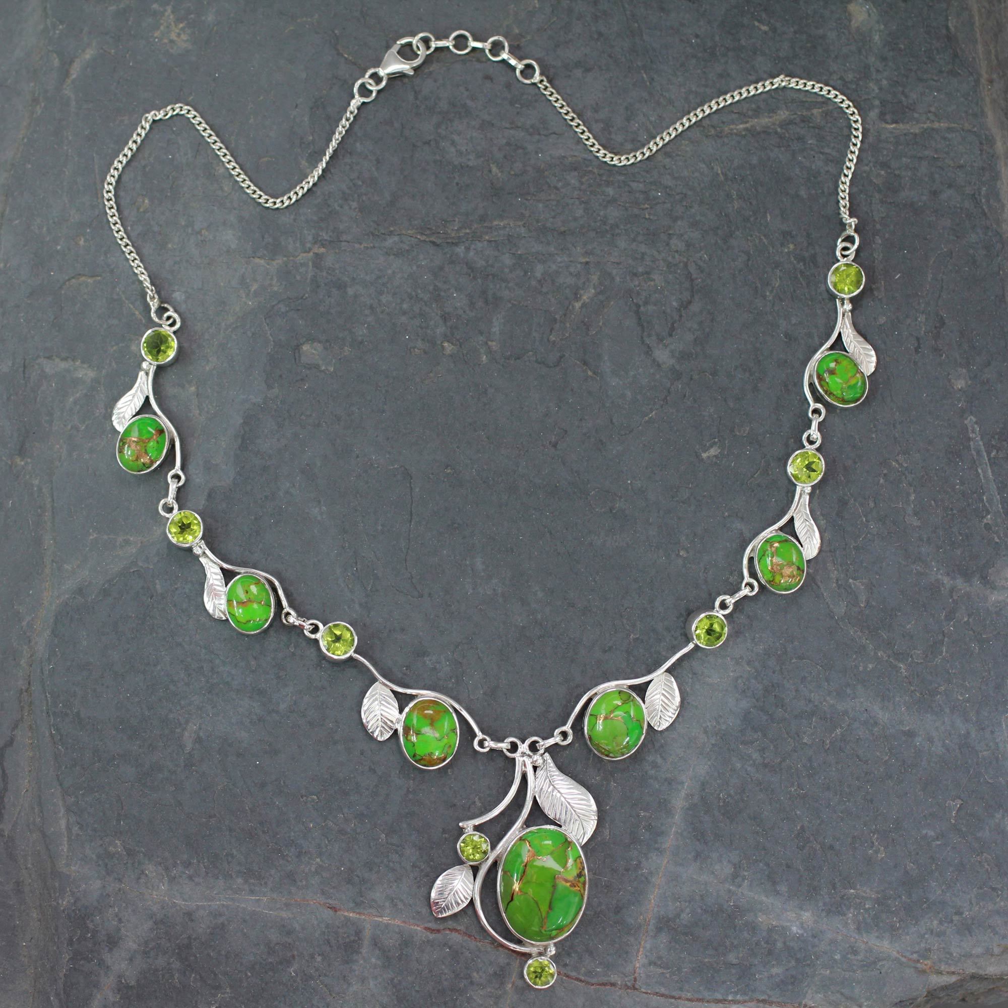 Indian Green Turquoise and Peridot Fair Trade Necklace, 'Leaves of Dreams'