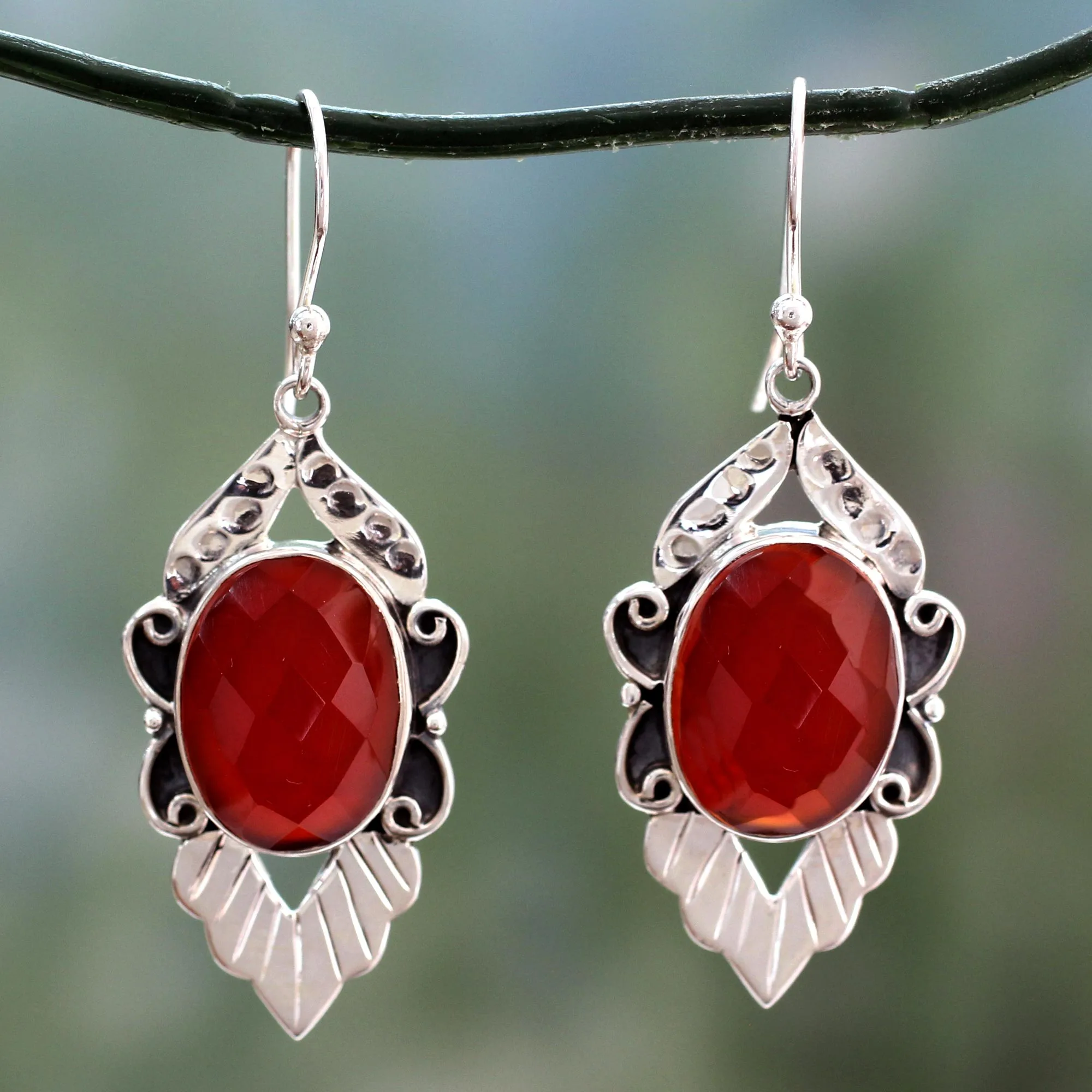 Indian Inspired Carnelian and Silver Dangle Earrings, 'Passion Embraced'