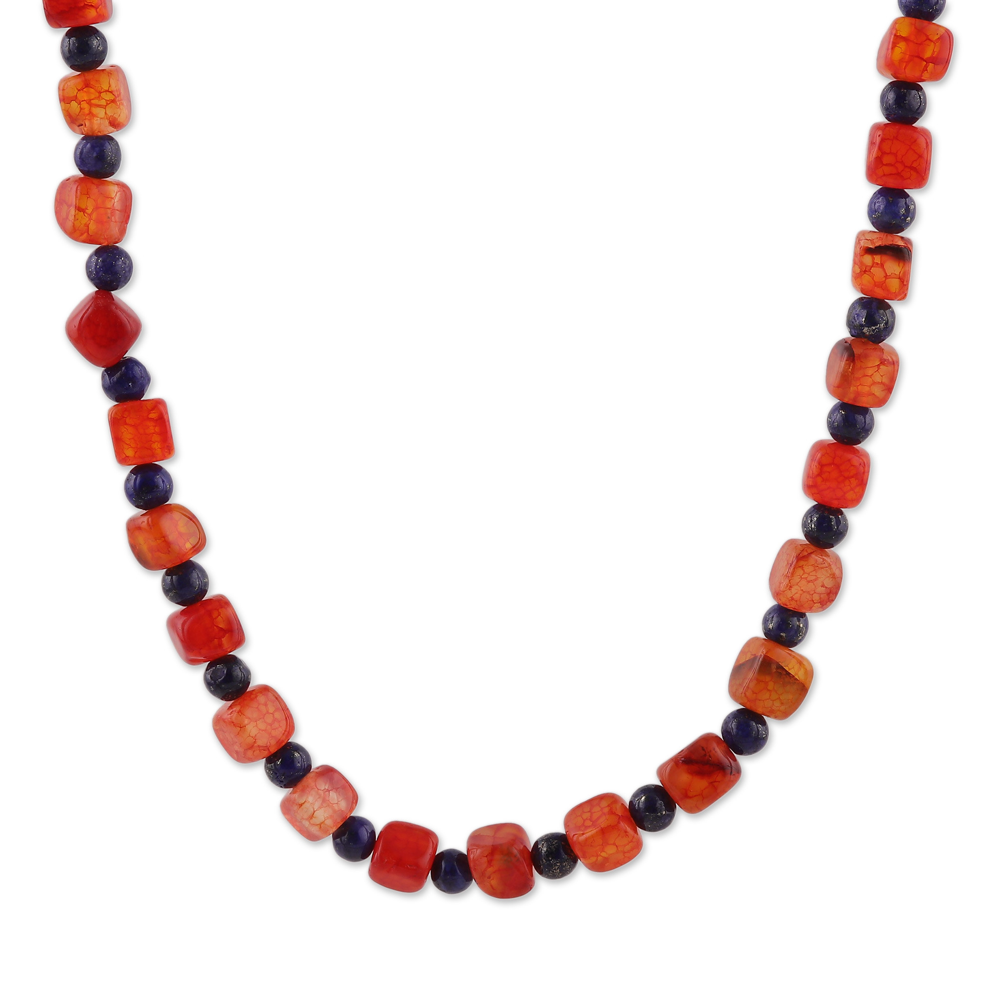 Indian-Made Lapis Lazuli and Orange Agate Beaded Necklace, 'True Balance'