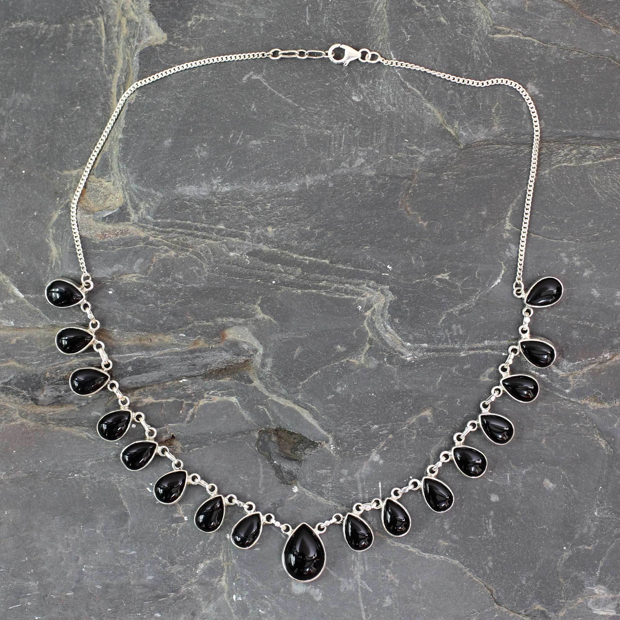 Indian Onyx and Sterling Silver Hand Crafted Necklace, 'Midnight Raindrops'