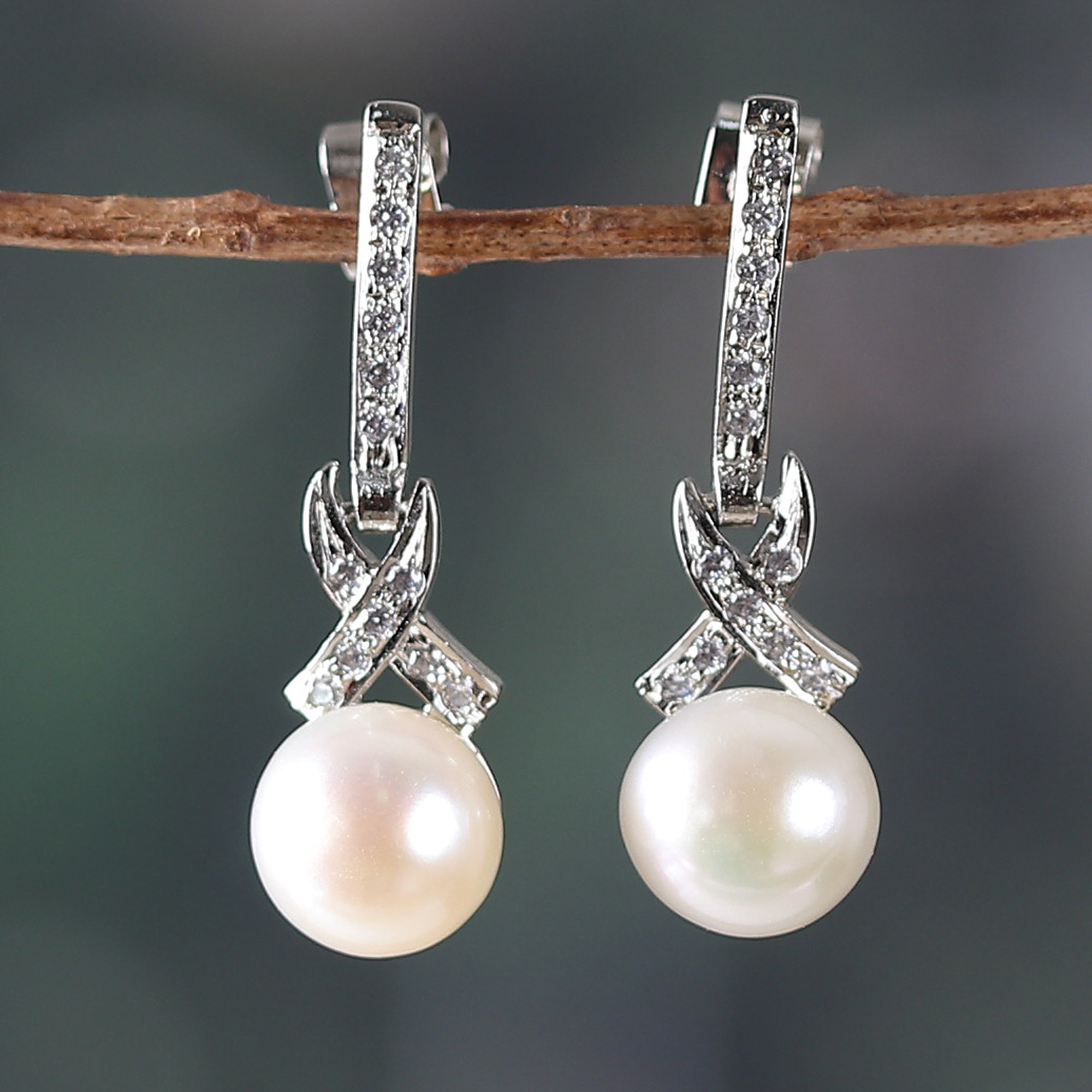 • Rhodium-plated 925 sterling silver, cubic zirconia, cultured pearls