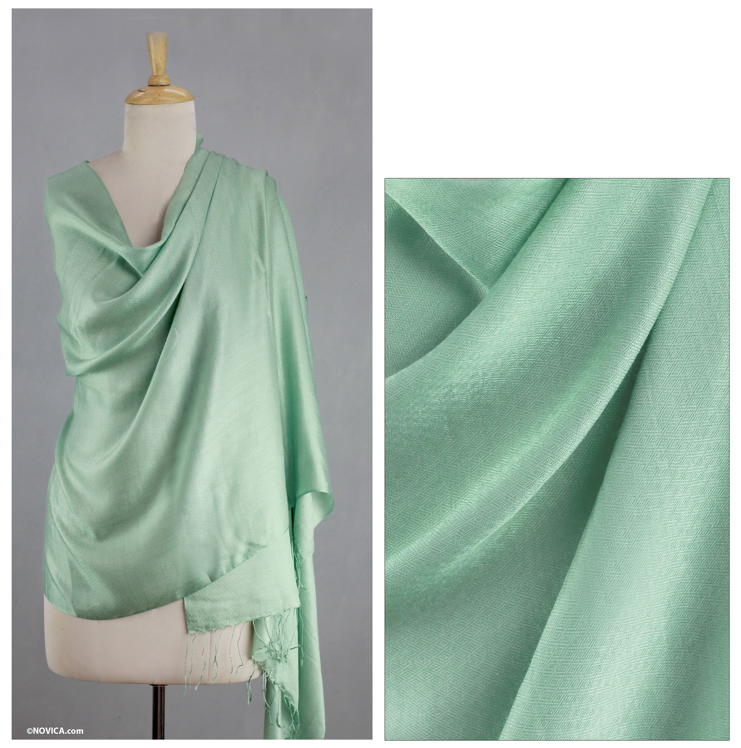 Indian Silk Shawl Wrap, 'Luxurious Aqua'
