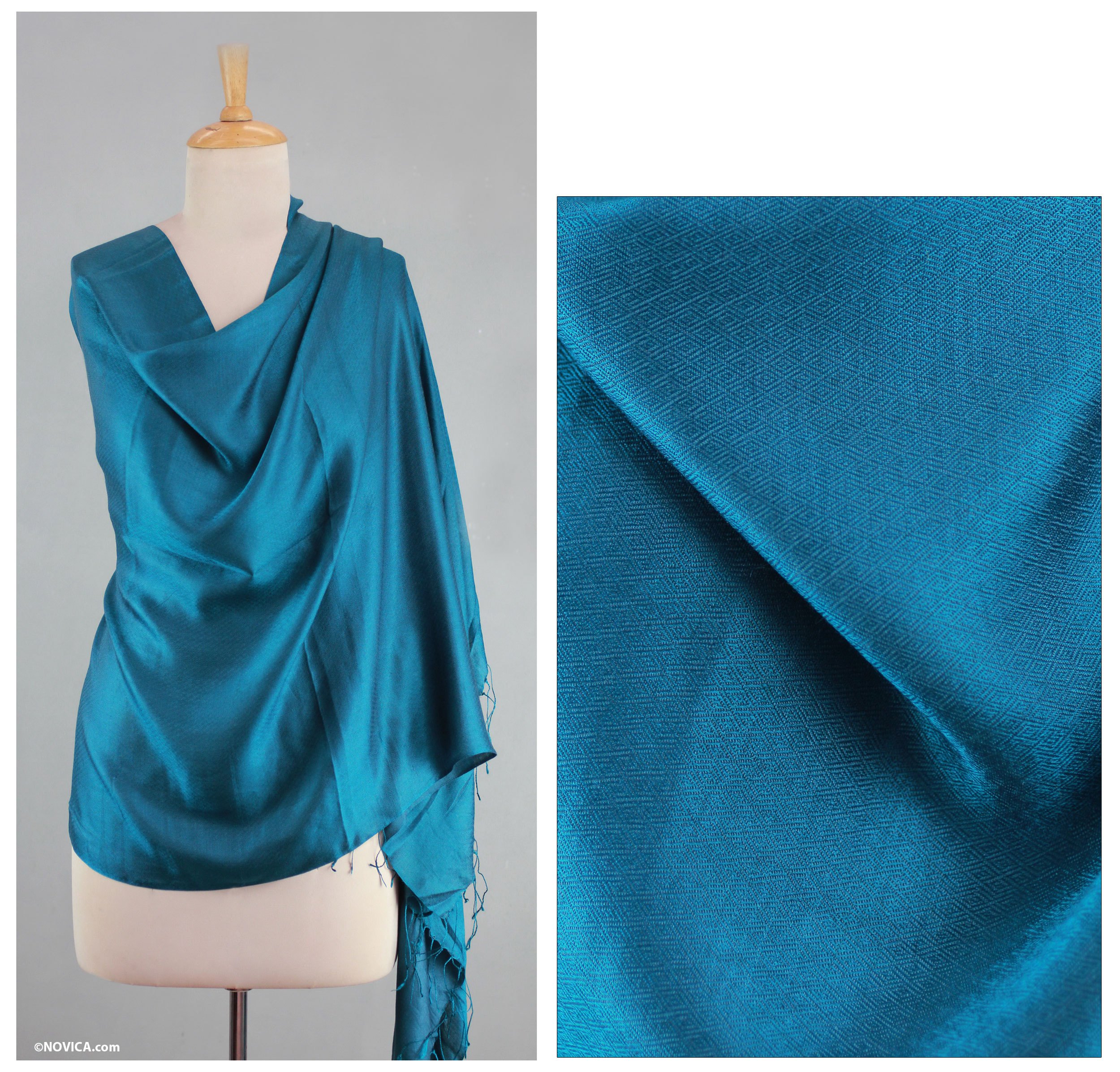Indian Silk Shawl Wrap, 'Luxurious Teal'