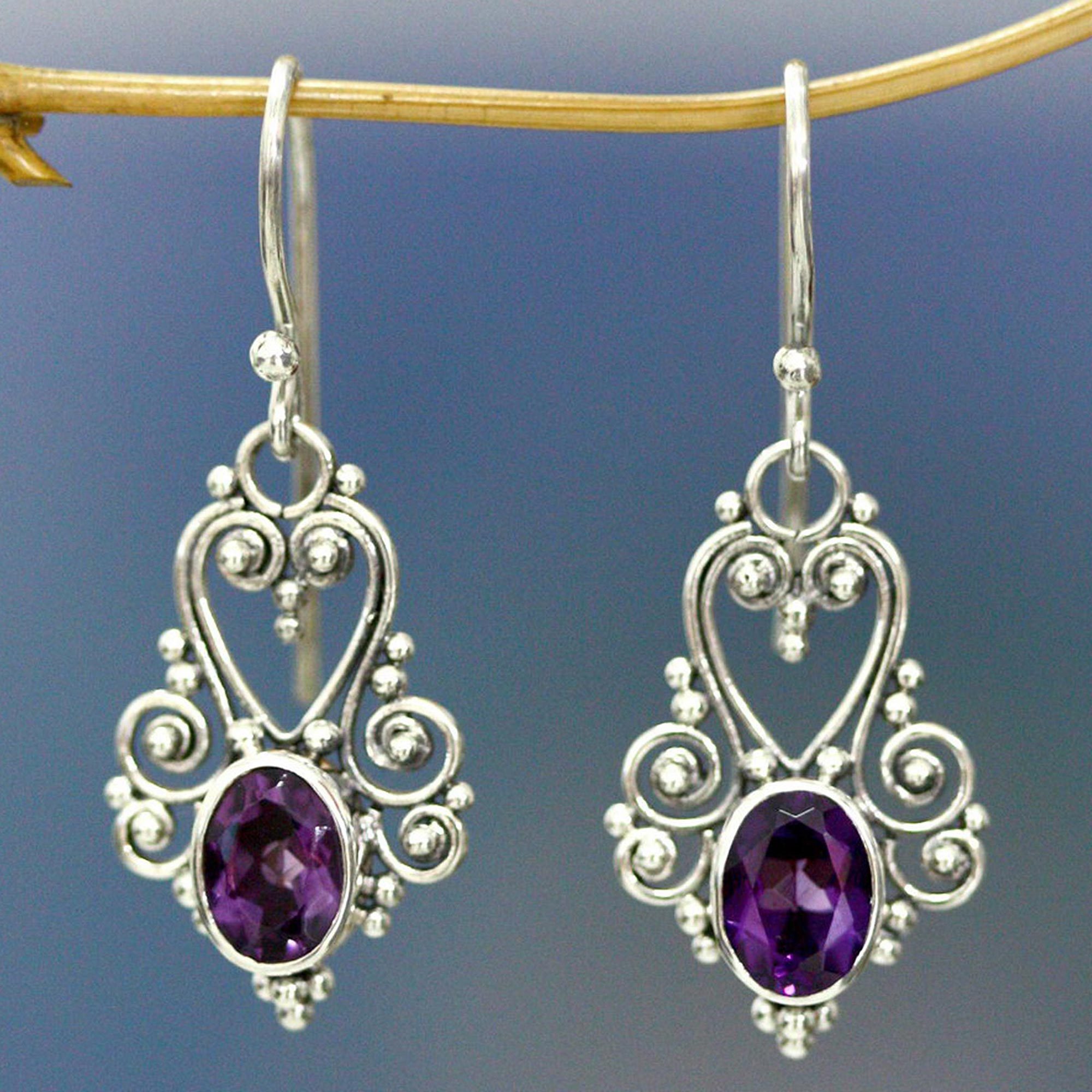 Indonesian Inspired Amethyst Dangle Earrings, 'Purple Royale'