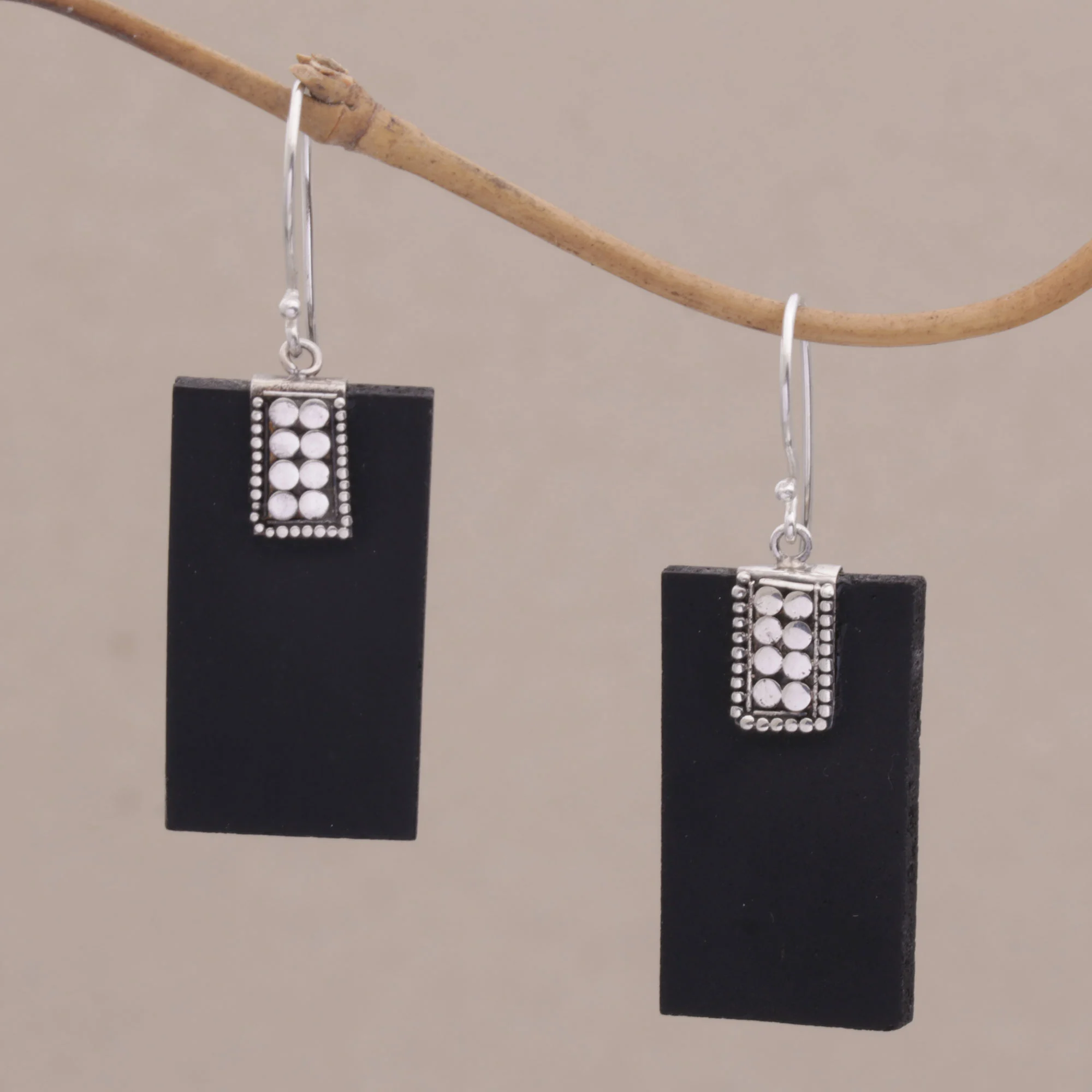 Indonesian Lava Stone and Sterling Silver Handmade Earrings, 'Sukawati Dominoes'