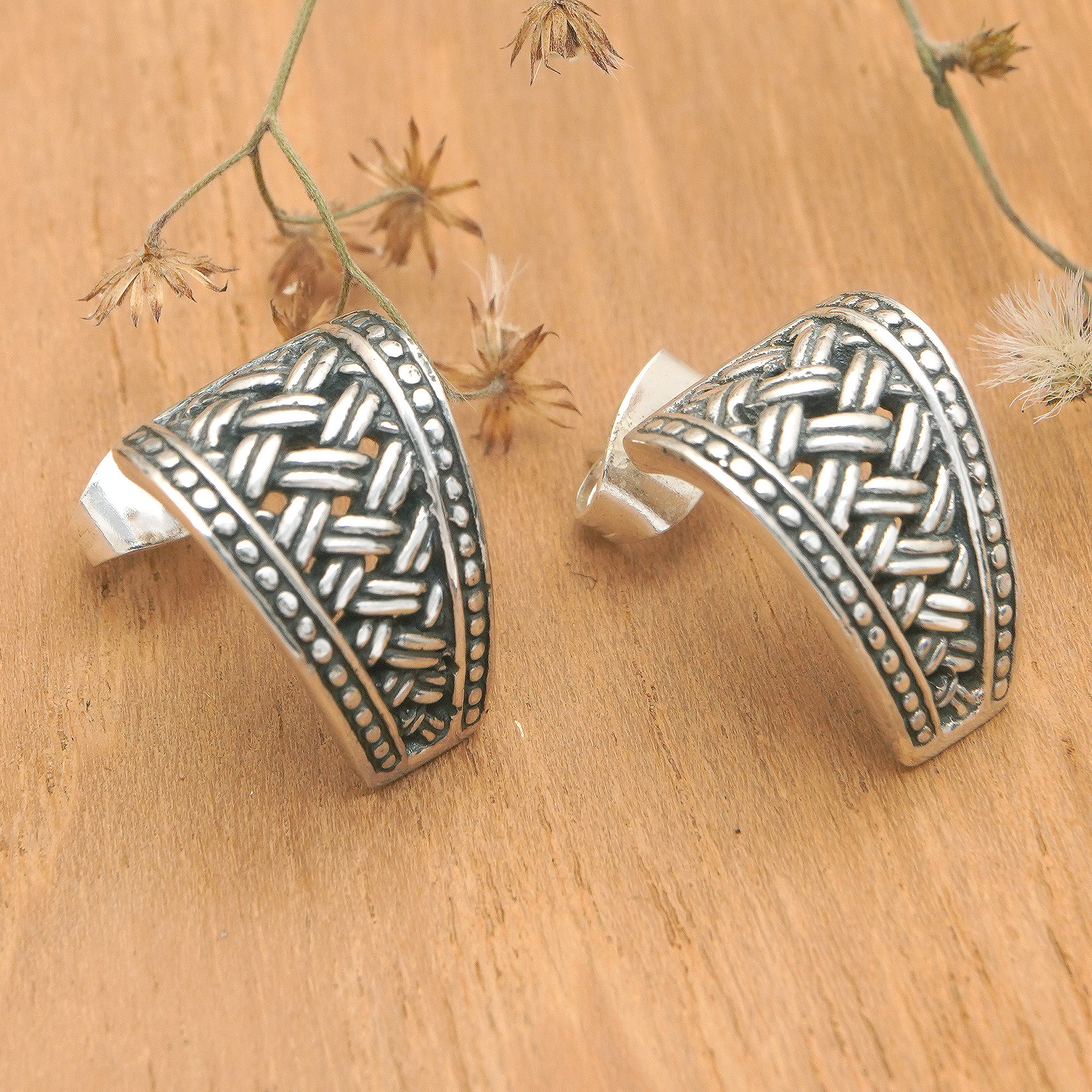 Indonesian Polished and Burnished Sterling Silver Earrings, 'Wondrous Weaves'