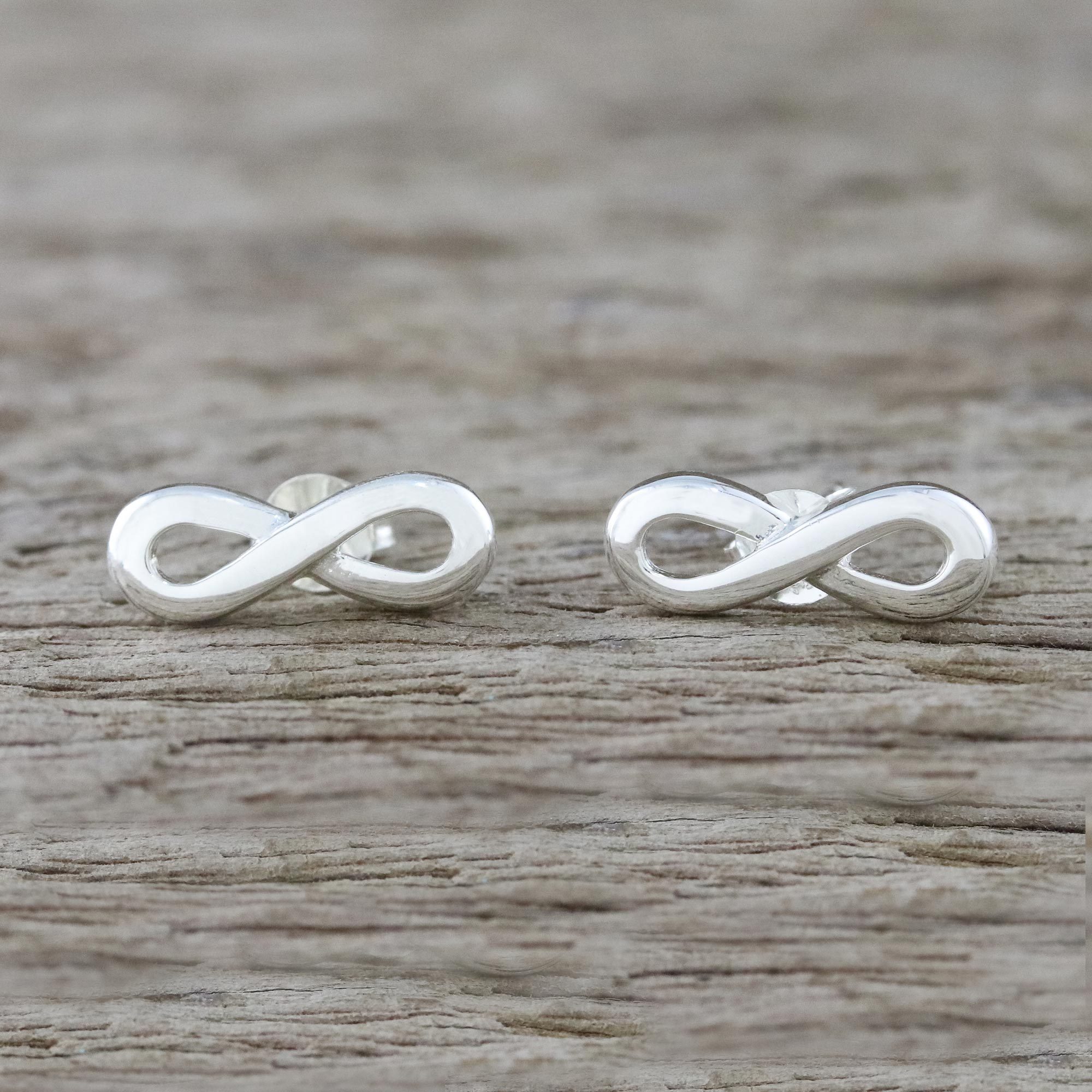 With a sleek, shiny design, these infinity symbol button earrings are designed by artisan Lalana of Thailand. The pair of earrings is handcrafted from sterling silver.