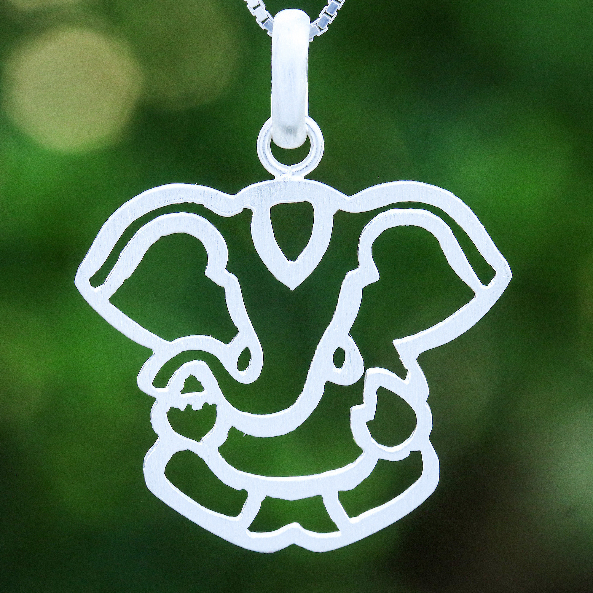 Brushed-satin sterling silver lines draw the wise silhouette of Ganesha in this pendant. Artisan Jantana of Thailand uses meticulous techniques to craft the piece, wishing you a blessed day.