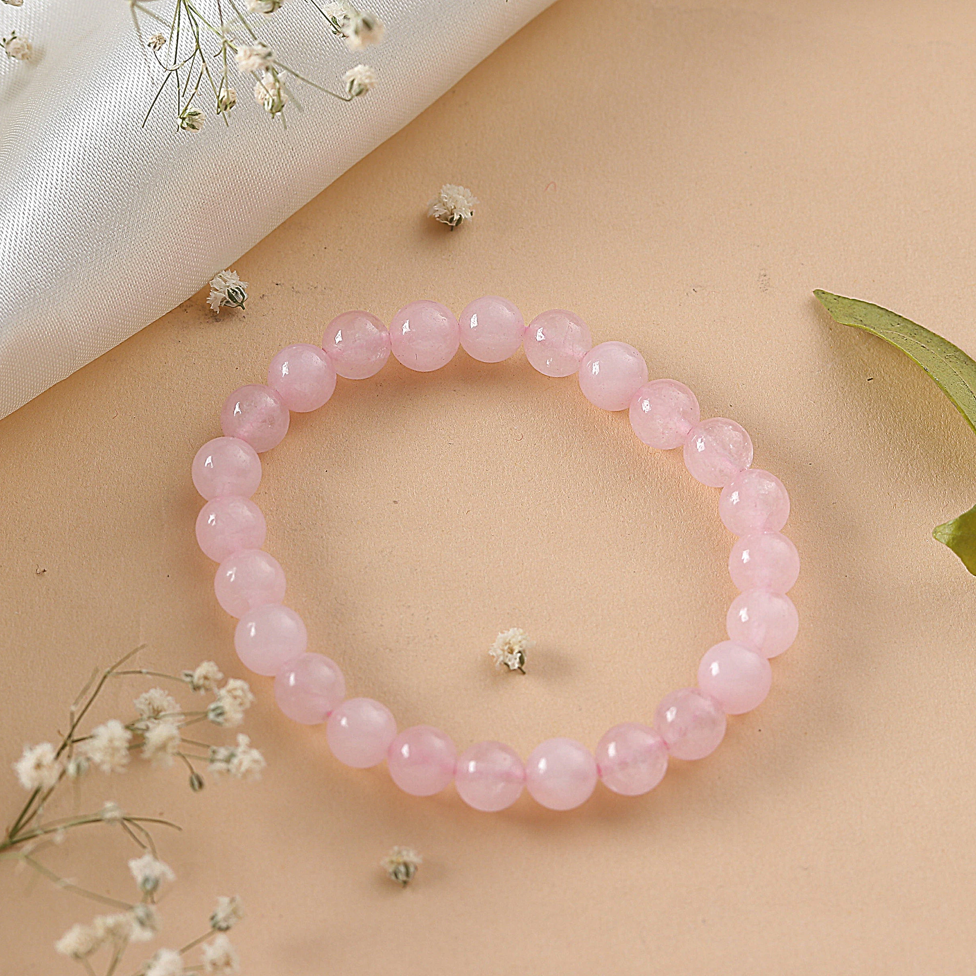 Nurture your soul with the rose quartz beads that compose this ethereal beaded stretch bracelet designed by India's Swasti Jain. Boasting each round gem in a polished finish, this comfortable accessory adjusts to your size, allowing you to use it as a sweet complement that also attracts energies of compassion.