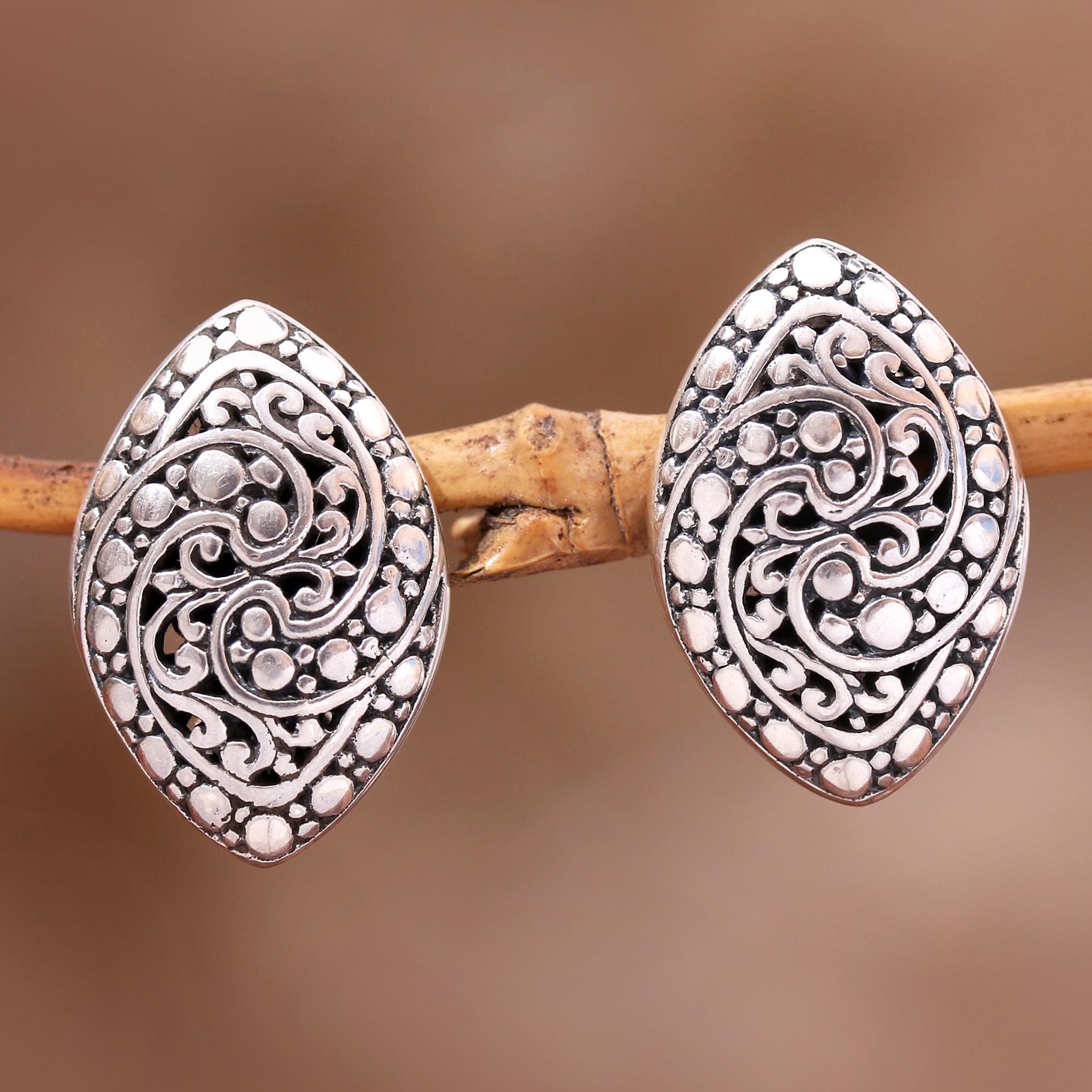 Intricate Sterling Silver Drop Earrings from Bali, 'Sukawati Garden'