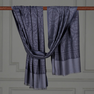 Jacquard Modal Shawl with Floral Damask Motifs in Grey, 'Slate Floral Damask'