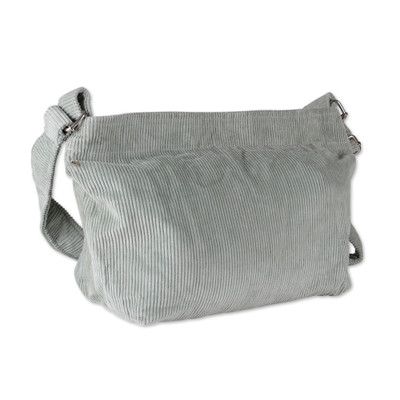 Jade 100% Cotton Corduroy Shoulder Bag with Adjustable Strap, 'Jade Elegance'