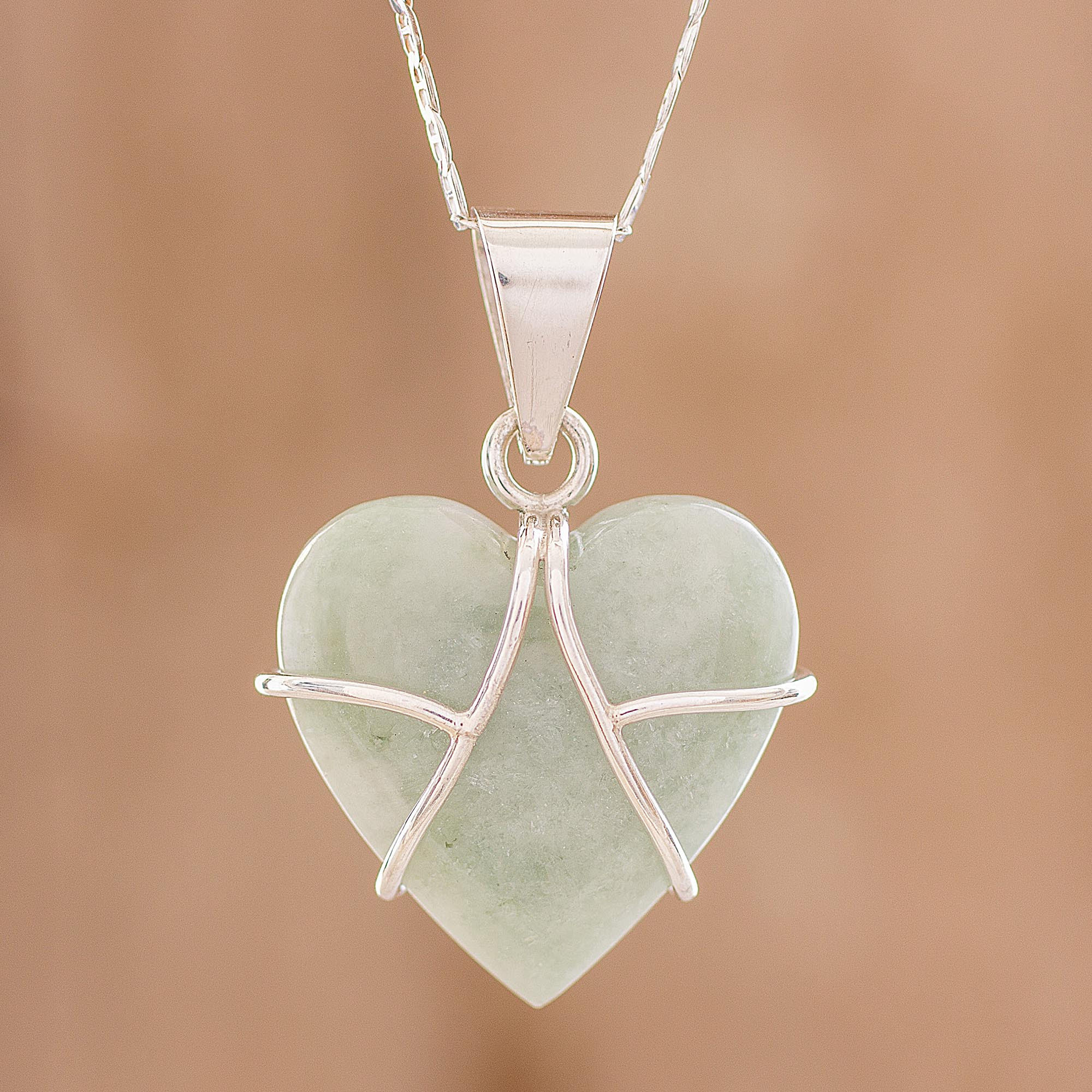 Jade and Sterling Silver Heart Pendant Necklace, 'Hopeful Destiny'