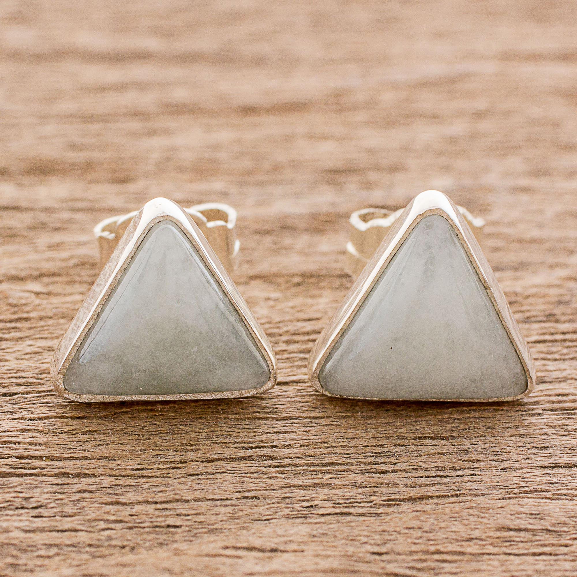 Jade and Sterling Silver Triangle Stud Earrings, 'Triangle Allure'