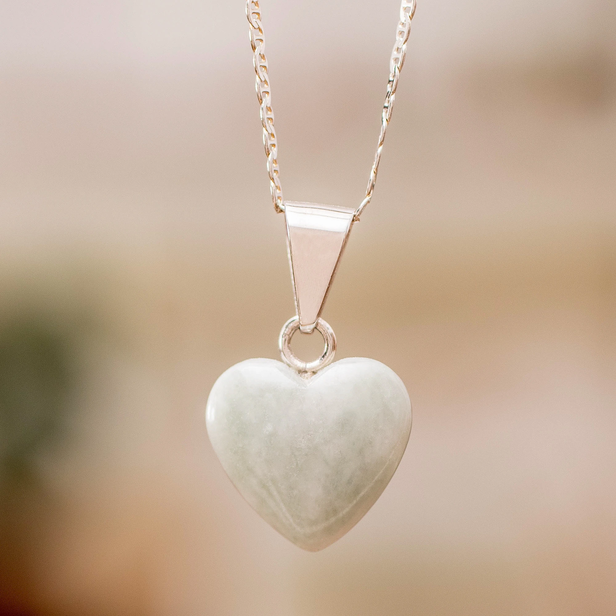 Guatemalan artisan Zandra Lorena Sajbin chooses to work with jade due to the stone's cultural significance for people of Mayan descent. She crafts this necklace from sterling silver, hanging a light green jade heart from a mariner chain.