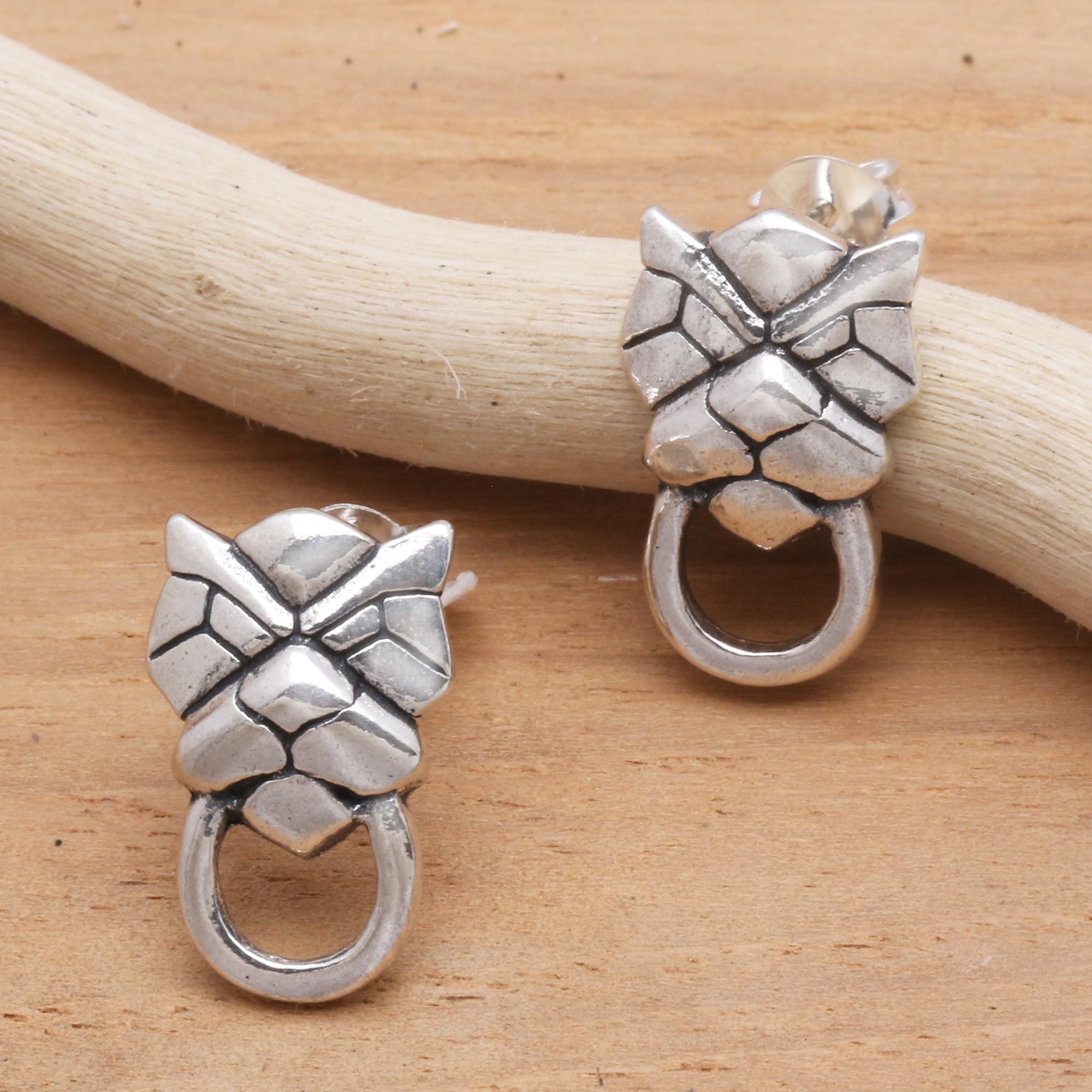 Recreating the fierce face of a jaguar, Dewa Arimbawa creates these unusual drop earrings. The earrings are crafted by hand from sterling silver with contrasting polished and oxidized finishes.
