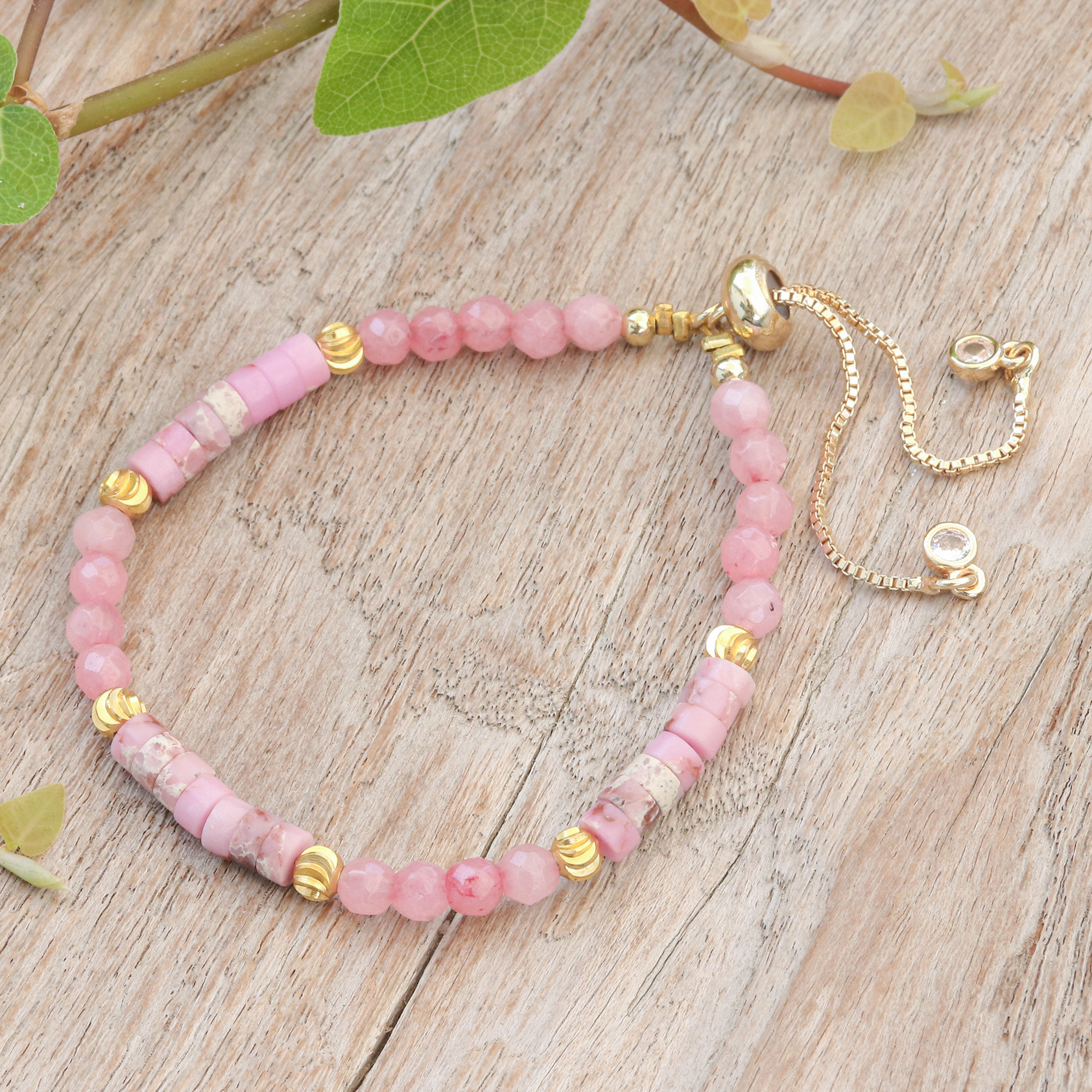 Prepare to be mesmerized by the sublime beauty of this wristband bracelet designed by Thai artisan Nareerat. It is a meticulous arrangement of energizing jasper and quartz stones that come together to create a visual symphony. Brass beads add a touch of sophistication while the adjustable clasp closure ensures a perfect fit, allowing you to showcase your impeccable taste with effortless elegance.