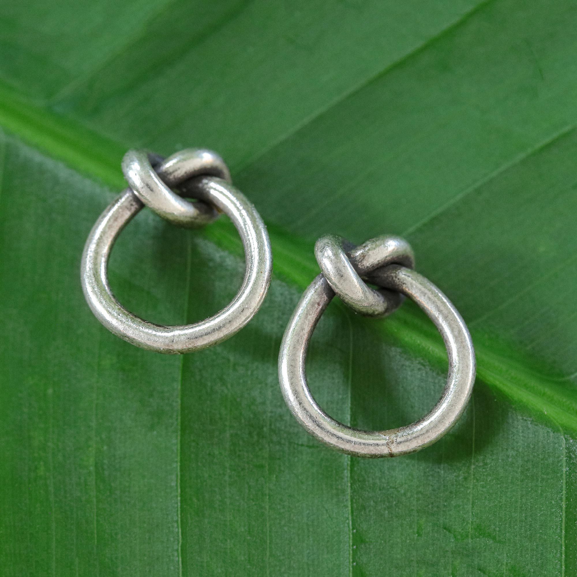 Karen Silver Infinity Knot Button Earrings, 'Forever Knot'
