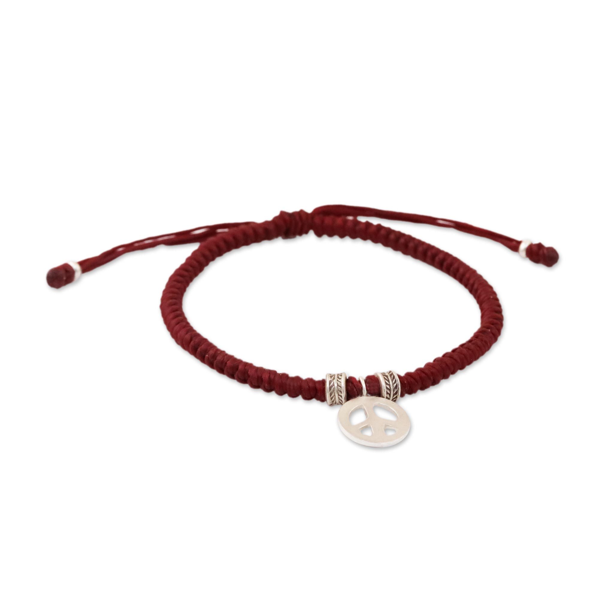 Exuding a peaceful vibe, this wristband bracelet from Chiang Mai features an original design by Thai artisan Napapat. She crafts the bracelet with a length of hand-braided red cord, accented with two petite beads and a peace sign charm crafted of Karen hill tribe silver. A sliding knot clasp with silver accents gives this wonderful bracelet an adjustable length.