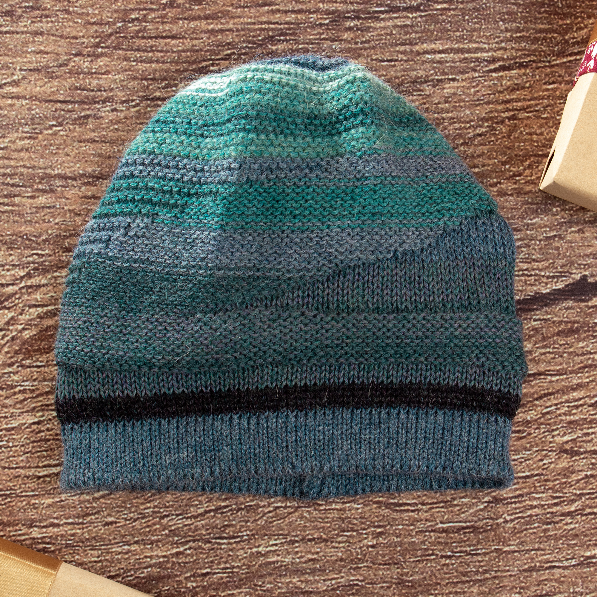 Knit 100% Alpaca Hat in Blue and Teal Shades from Peru, 'Blue Textured Landscape'
