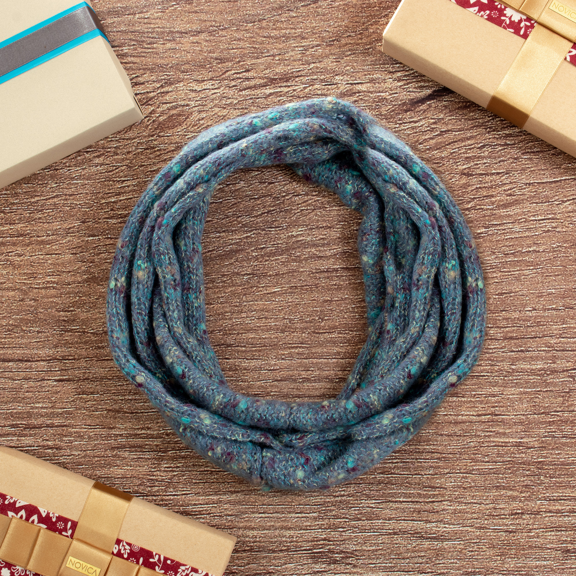 Ana Fernandez brings refined warmth to your neckline with this posh accessory knitted from an alpaca blend in Peru. Its versatile steel blue hue, featuring accents in turquoise, violet and ivory, complements any cold-weather ensemble with a subtle luxe touch. Wrap up in its soft wool to stay cozy and chic when temperatures drop.