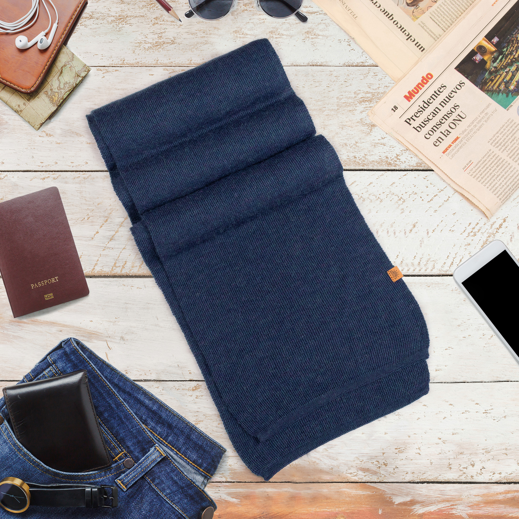 Knit Alpaca Blend Scarf in Indigo Blue Shade from Peru, 'Cozy Indigo'