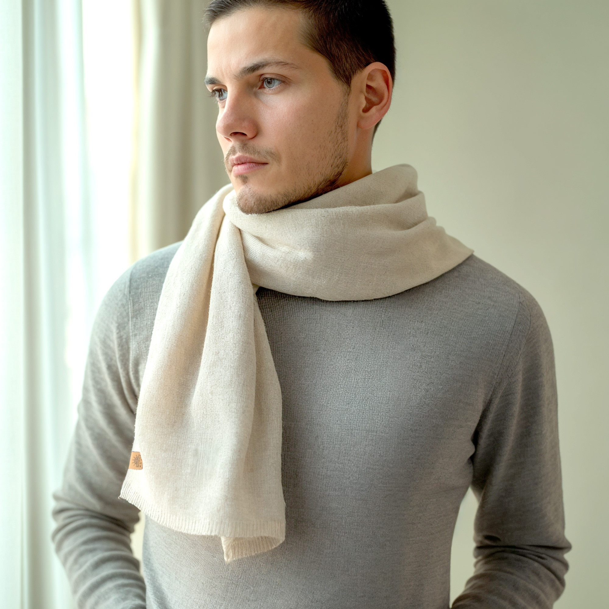 Knit Alpaca Blend Scarf in Vanilla Shade from Peru, 'Cozy Vanilla'