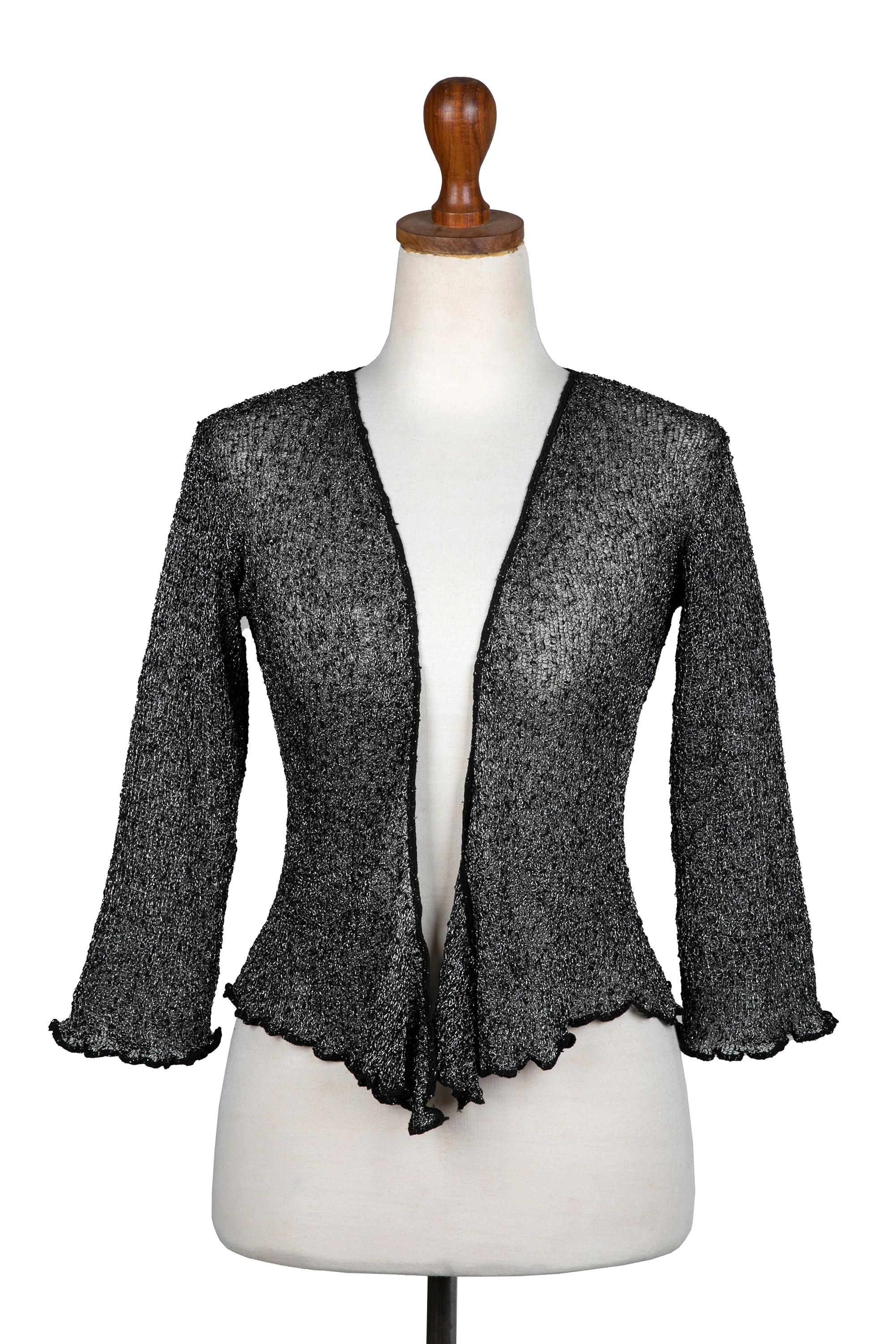 Knit Jacket and Shrug in Black with Silver Lurex Accents, 'Chic Shrug in Black Metallic'