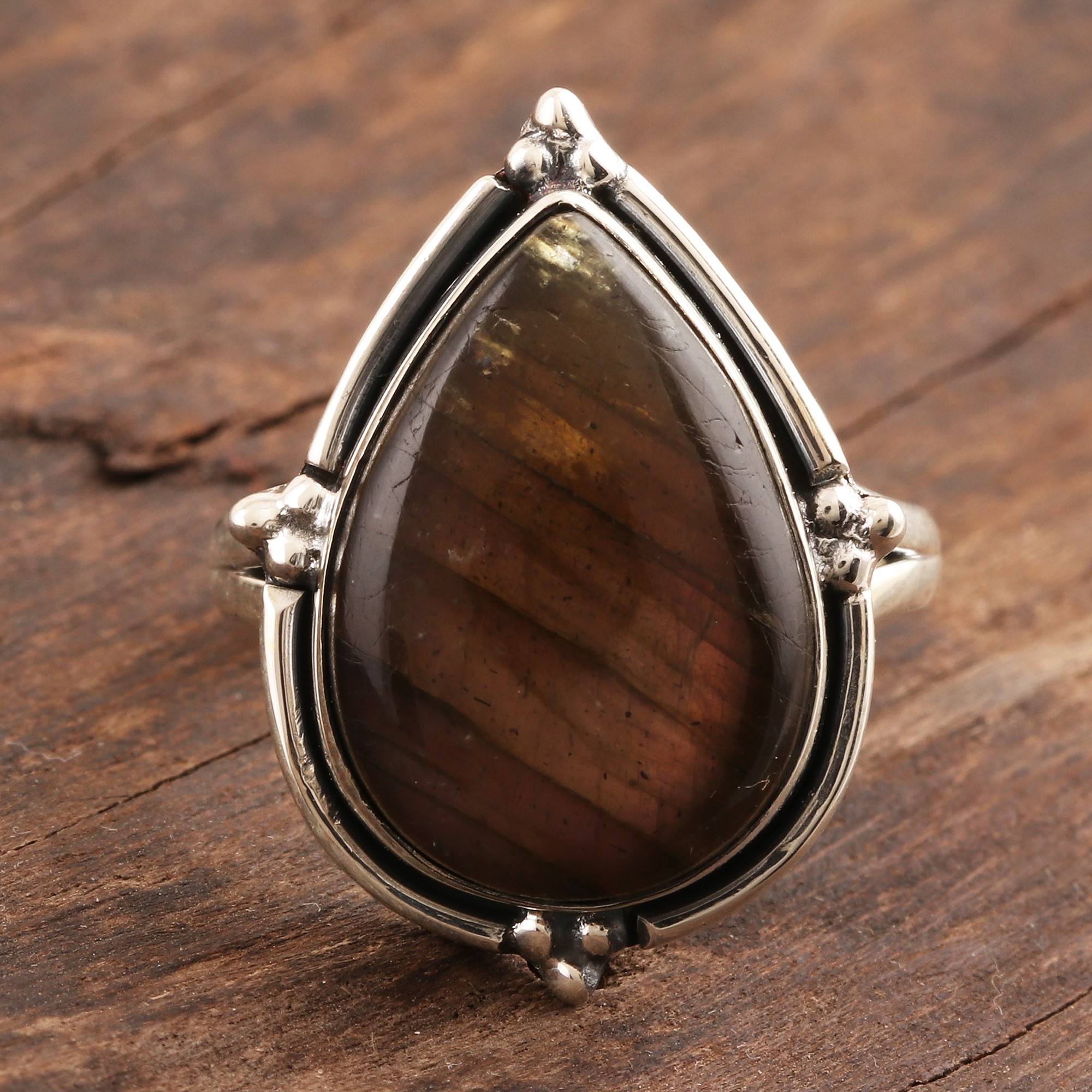 Labradorite and Sterling Silver Pear-Shaped Cocktail Ring, 'Magical Glory'