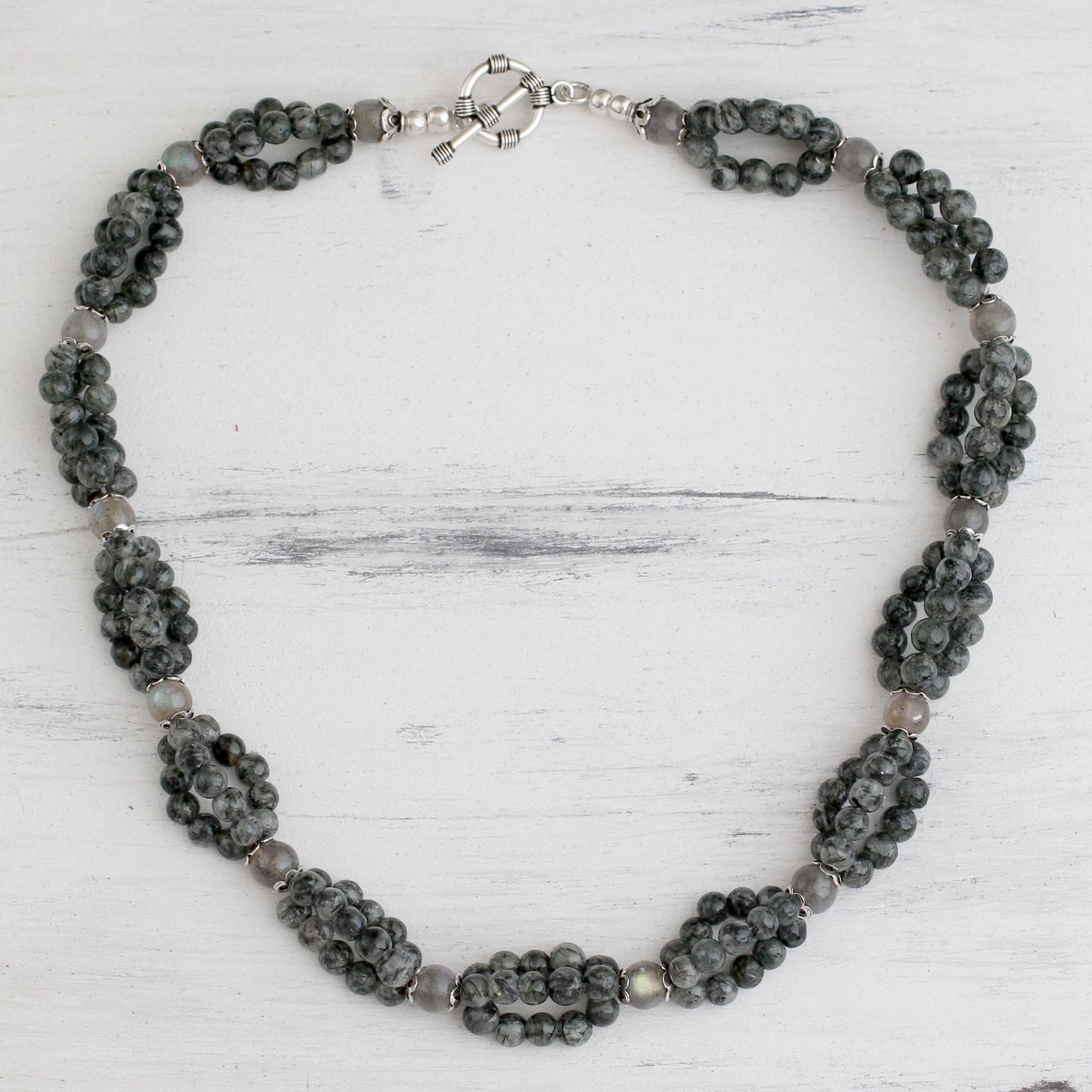 Labradorite beaded necklace, 'Evening Muse'