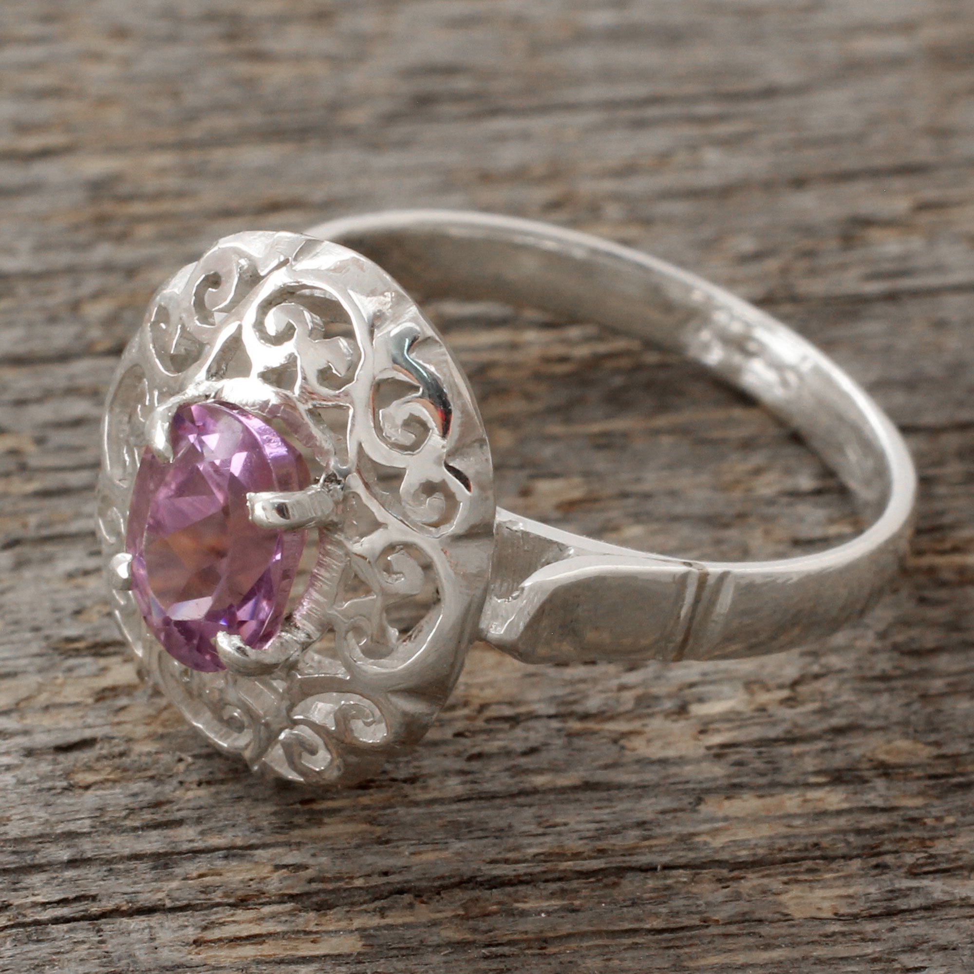Lacy Sterling Silver Cocktail Ring with Amethyst, 'Festivity in Lilac'