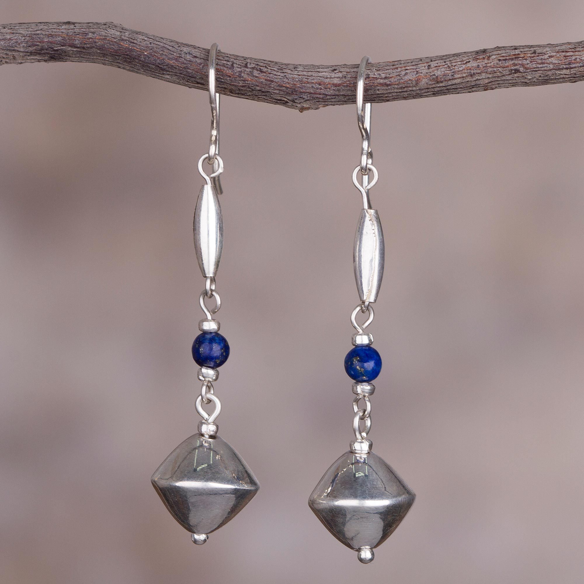 Lapis Lazuli and Sterling Silver Dangle Earrings from Peru, 'Heavenly Glamour'